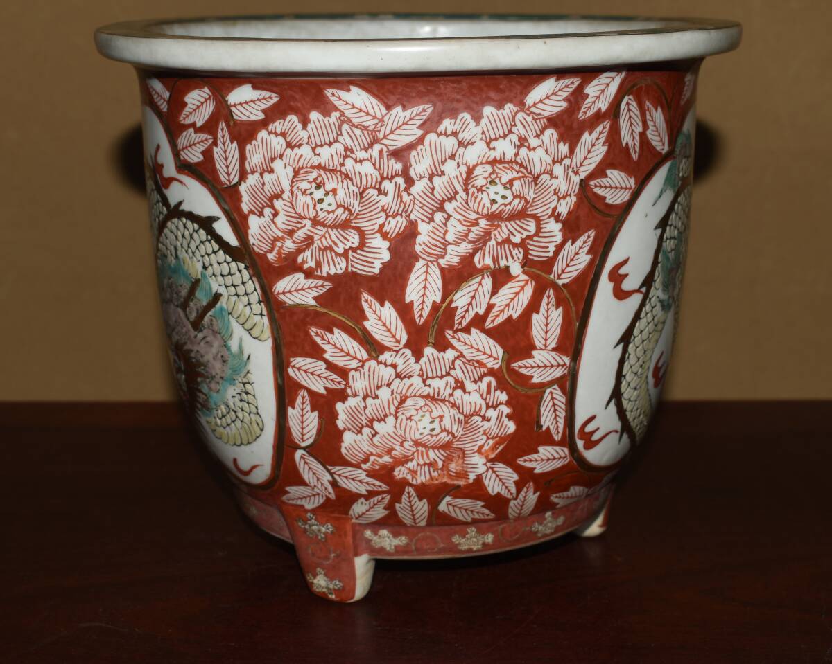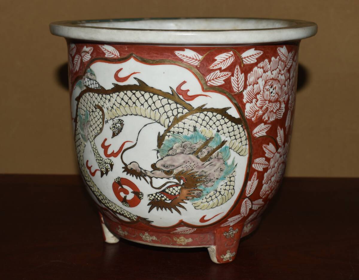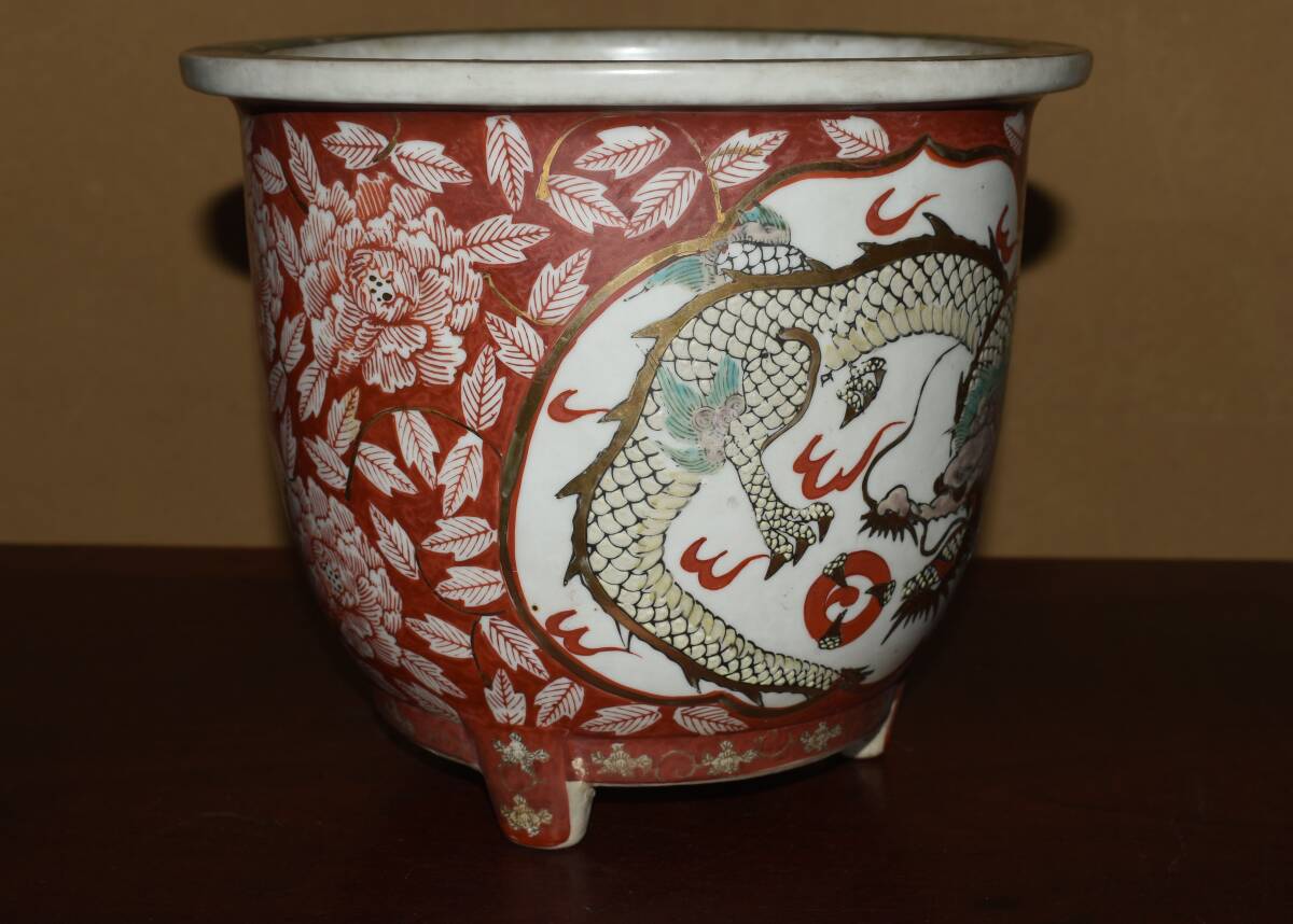 サイズ24,0x21,0cm 人気古窯作家<古有田焼、伊万里・金襴手、赤絵龍図・発色抜群・実用性抜群・使い頃サイズ>外縁丸・蘭鉢のご紹介です。・・100年前後経過した作。金襴手、赤絵の龍図が繊細に描き込まれ、実用にも優れた素晴らしい逸品です・目立つ傷はありません。・・ 大変古い物ですので縁・足等にホツ・スジ・カケ等がある場合がございます。 状態を良くご確認の上、ご入札宜しくお願い致します。。画像を良くご確認の上、御入札宜しくお願い致します。完品をお求めの方は入札をお控えお願い致します。*注意事項* オークション終了後48時間以内に必ずご連絡をお願いします。ご連絡がない時は、ご購入意思がないと判断し、落札者さま都合のキャンセルとさせて頂きます。再三のご連絡を差し上げても、ご連絡がない場合は、時点繰り上げとさせて頂きます。マイナス評価の多い方や新規の方を削除する場合がありますので、ご了承下さい。また、入札価格が低価格の場合は取消終了とさせて頂く場合がございますので、ご了承願います。古い物等ございますので小さな傷等は、見落とす場合がございますので、写真を良くご覧になり納得の上ご入札して下さい。また、完品をお求めの方は入札をお控えお願い致します。キズ・破損等のご連絡は商品到着5日以内にご連絡ください。それ以降は対応致しかねますので到着後、商品を必ずご確認ください。輸送中の事故(鉢が割れる、枝が折れる等)につきましては商品到着時に確認し取引ナビまたは、お電話にてご連絡下さい。 基本土日の発送は行っておりません。ご了承ください。