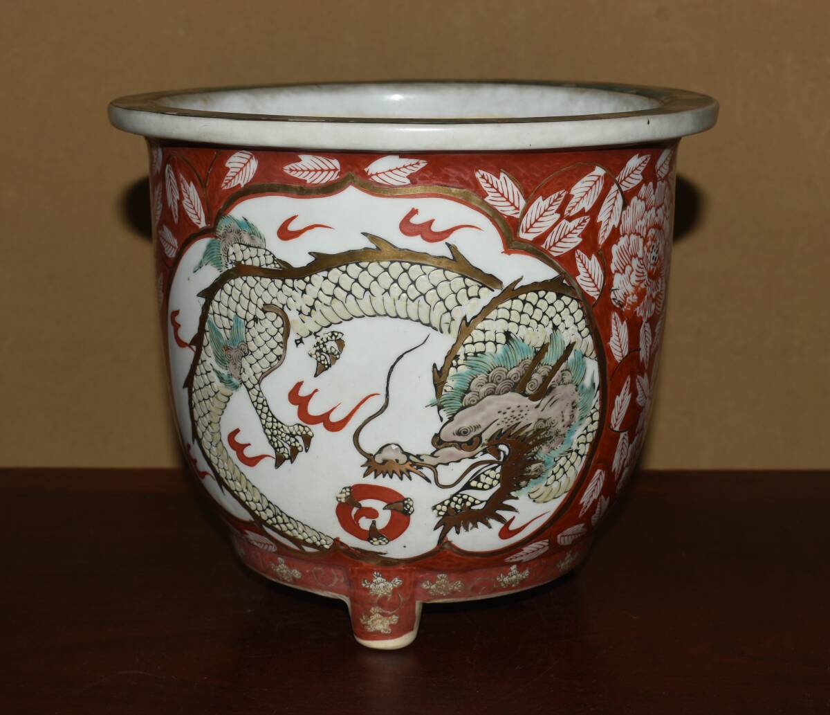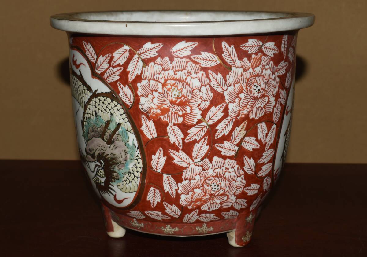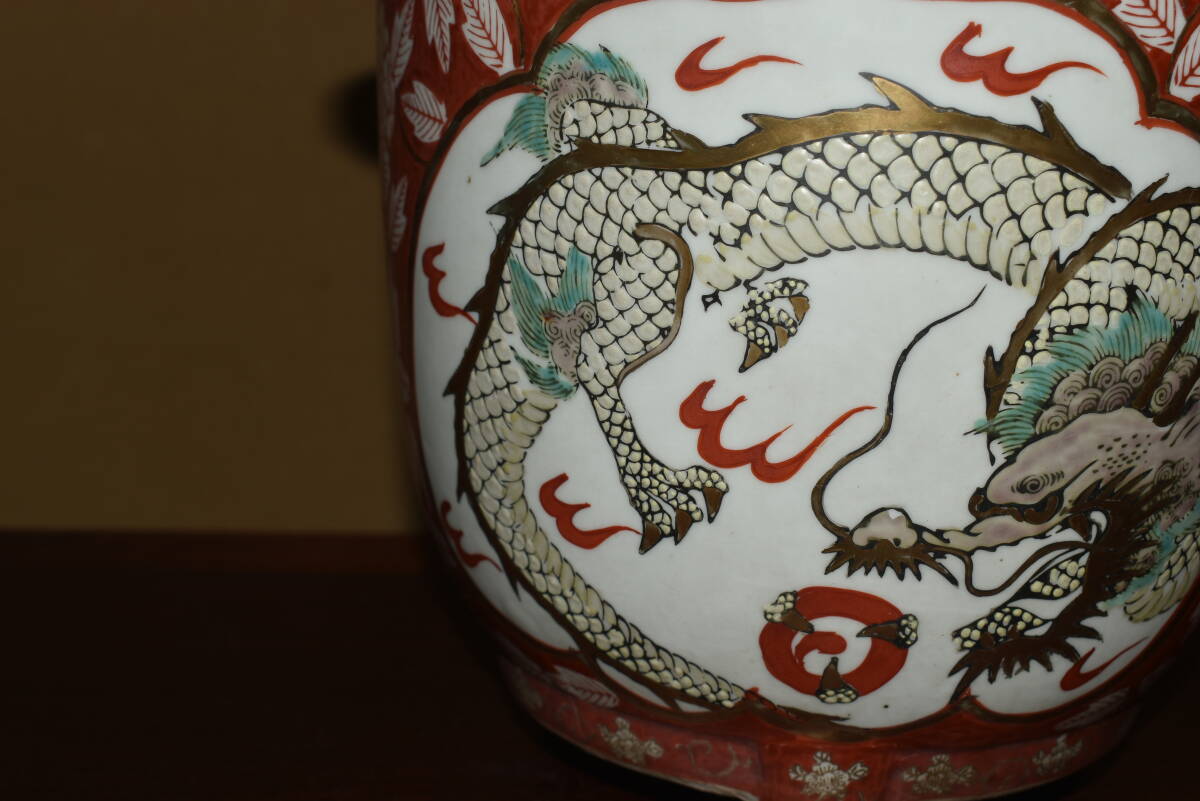 サイズ24,0x21,0cm 人気古窯作家<古有田焼、伊万里・金襴手、赤絵龍図・発色抜群・実用性抜群・使い頃サイズ>外縁丸・蘭鉢のご紹介です。・・100年前後経過した作。金襴手、赤絵の龍図が繊細に描き込まれ、実用にも優れた素晴らしい逸品です・目立つ傷はありません。・・ 大変古い物ですので縁・足等にホツ・スジ・カケ等がある場合がございます。 状態を良くご確認の上、ご入札宜しくお願い致します。。画像を良くご確認の上、御入札宜しくお願い致します。完品をお求めの方は入札をお控えお願い致します。*注意事項* オークション終了後48時間以内に必ずご連絡をお願いします。ご連絡がない時は、ご購入意思がないと判断し、落札者さま都合のキャンセルとさせて頂きます。再三のご連絡を差し上げても、ご連絡がない場合は、時点繰り上げとさせて頂きます。マイナス評価の多い方や新規の方を削除する場合がありますので、ご了承下さい。また、入札価格が低価格の場合は取消終了とさせて頂く場合がございますので、ご了承願います。古い物等ございますので小さな傷等は、見落とす場合がございますので、写真を良くご覧になり納得の上ご入札して下さい。また、完品をお求めの方は入札をお控えお願い致します。キズ・破損等のご連絡は商品到着5日以内にご連絡ください。それ以降は対応致しかねますので到着後、商品を必ずご確認ください。輸送中の事故(鉢が割れる、枝が折れる等)につきましては商品到着時に確認し取引ナビまたは、お電話にてご連絡下さい。 基本土日の発送は行っておりません。ご了承ください。