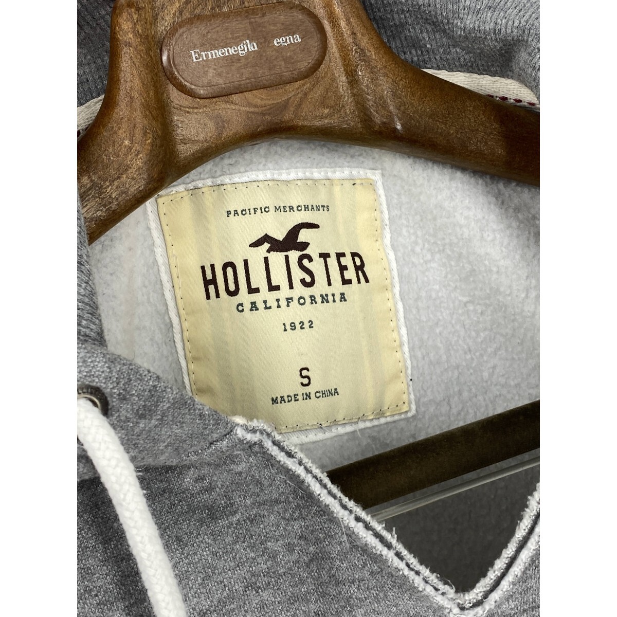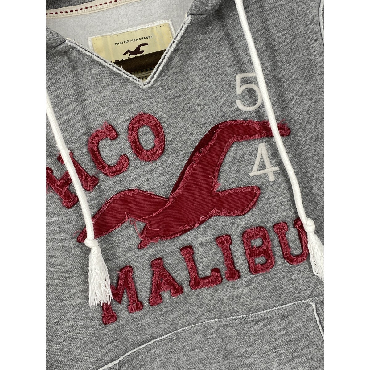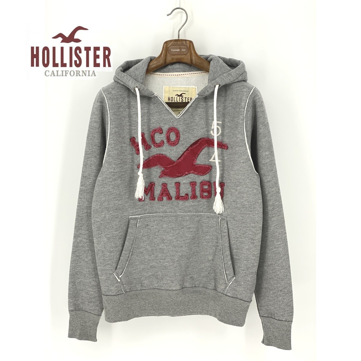 B0262/美品 HOLLISTER ホリスター コットン ワッペン カンガルーポケット フード パーカー 長袖 スウェット トレーナー S 灰色 メンズ