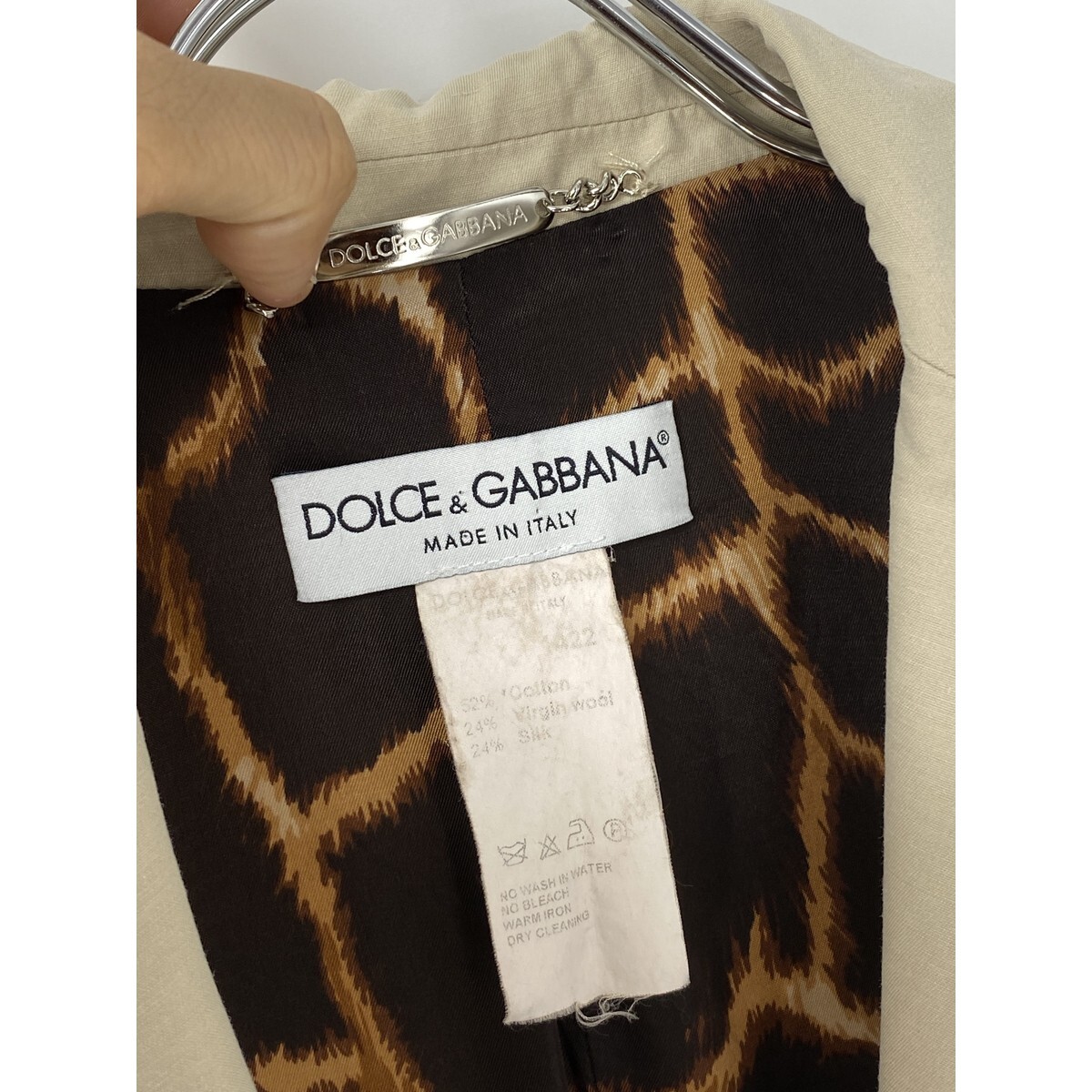 A9392/春夏 総裏 DOLCE&GABBANA ドルチェアンドガッバーナ ウール シルク 裏地レオパード テーラード ジャケットS程 38ベージュ レディース