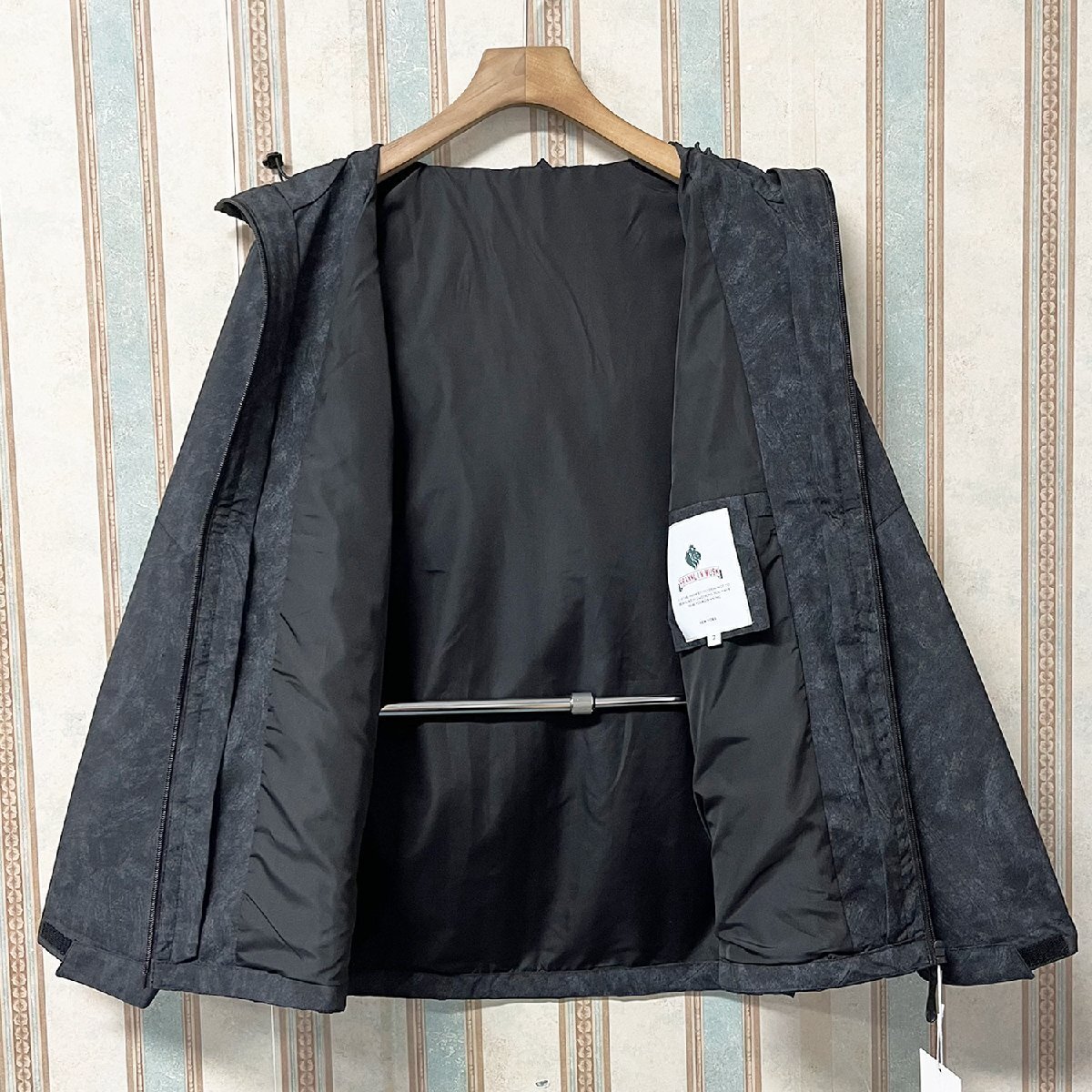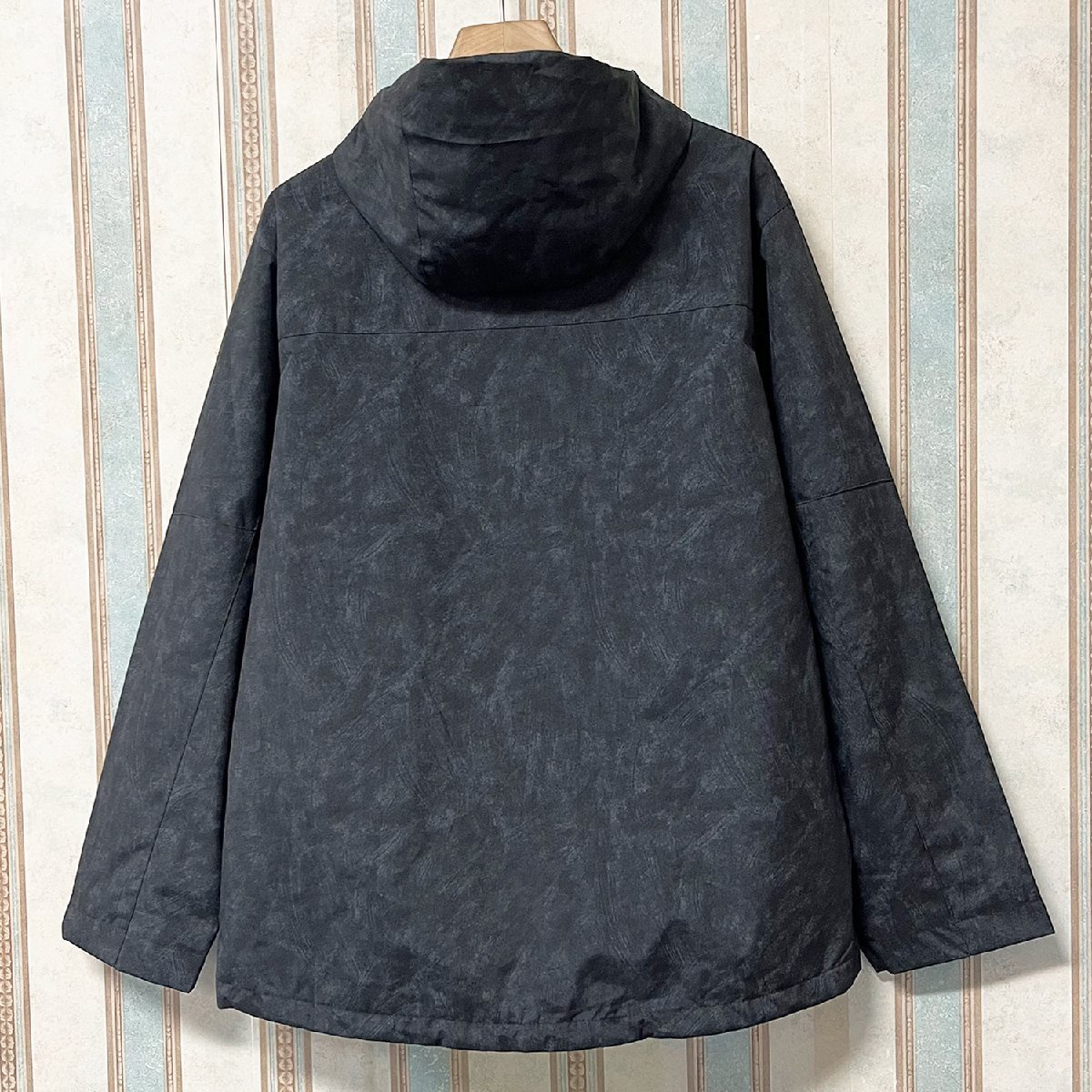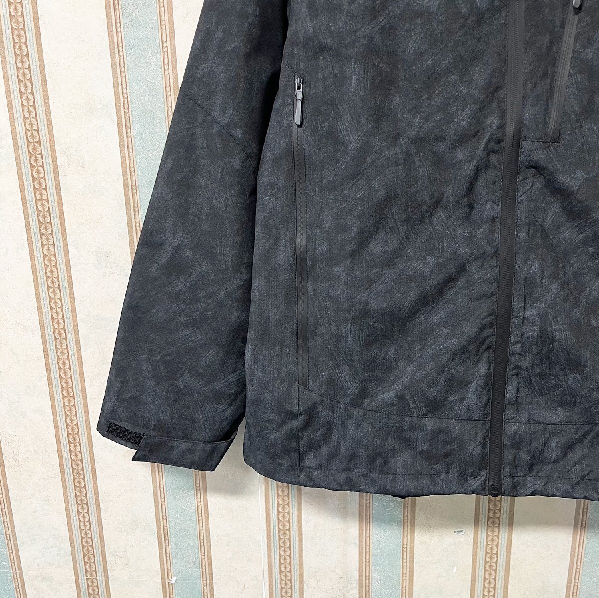 タイダイ染めが施されており、個性を引き立てながらも、派手すぎず落ち着いた印象に仕上がっています。ファスナーで首まで引上げ可能で、外部の冷たい空気を遮断することができます、しっかりと首まわりを保護されます。フードと裾は紐でサイズ感を調整することが出来るので、寒い時はきつめに紐を縛ることによって防寒対策も可能です。袖口には調整可能なマジックテープが施されており、風の侵入を防ぎながらぴったりとフィットさせることができます。両サイドには便利なポケット、さらに胸元にもポケットを備えており、必需品を収納できる十分な収納スペースを提供します。