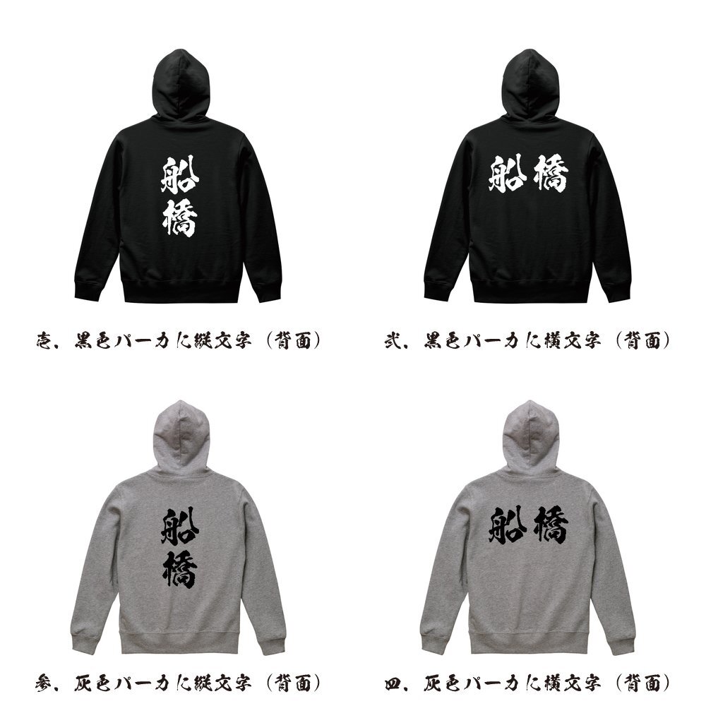 船橋 オリジナル パーカ 書道家が書く プリント フルジップ パーカー S M L XL XXL 110 130 150 【 千葉 】