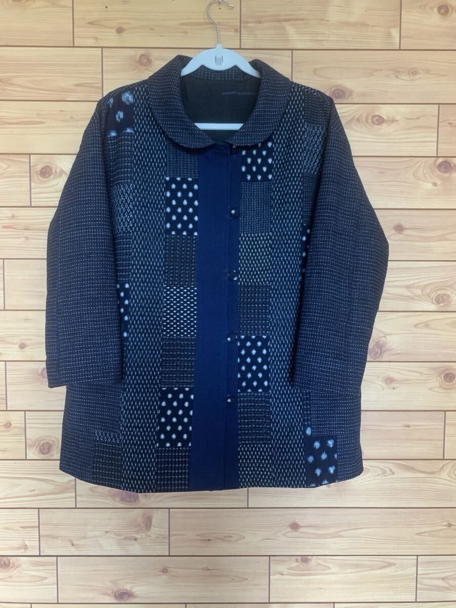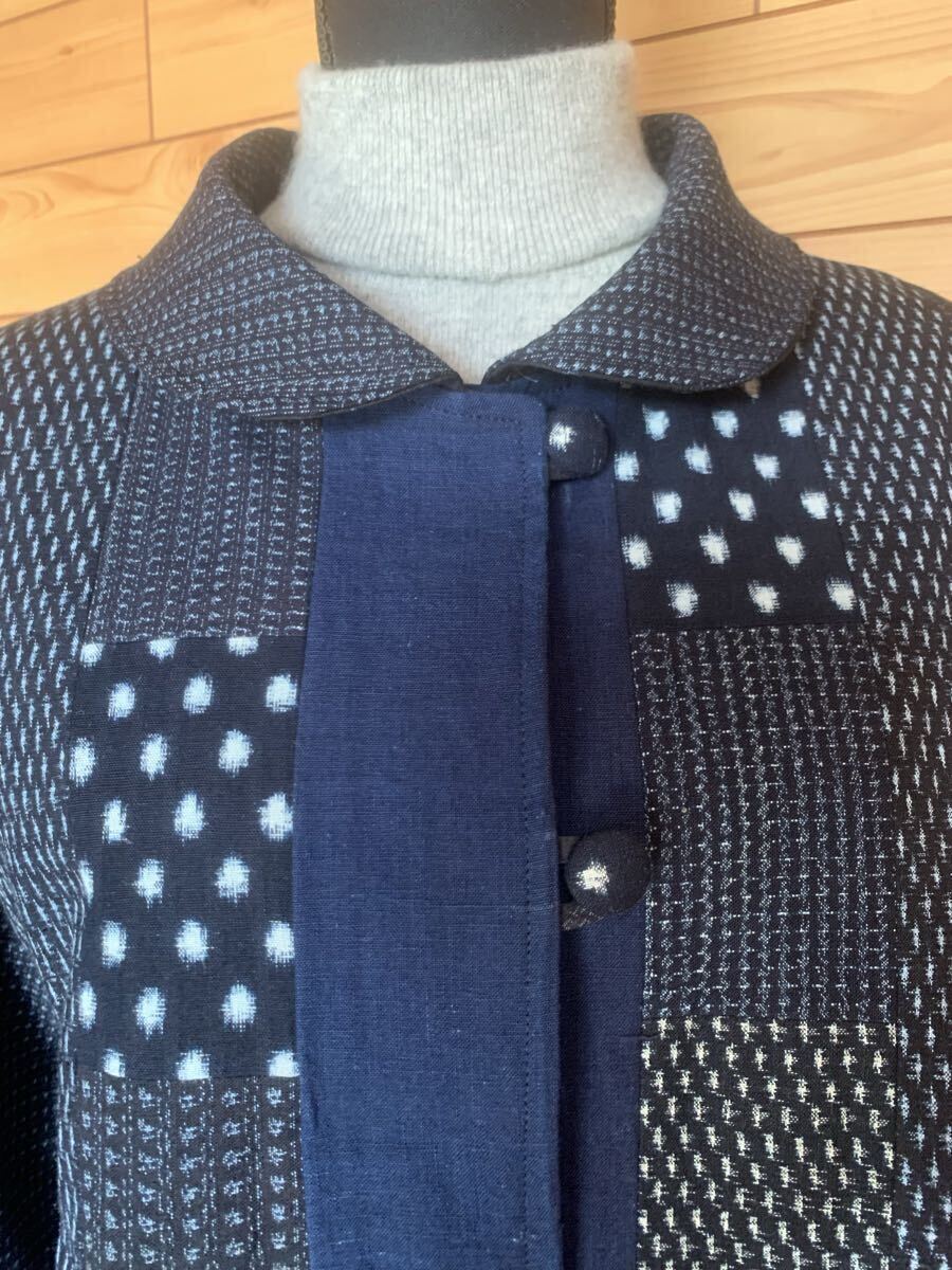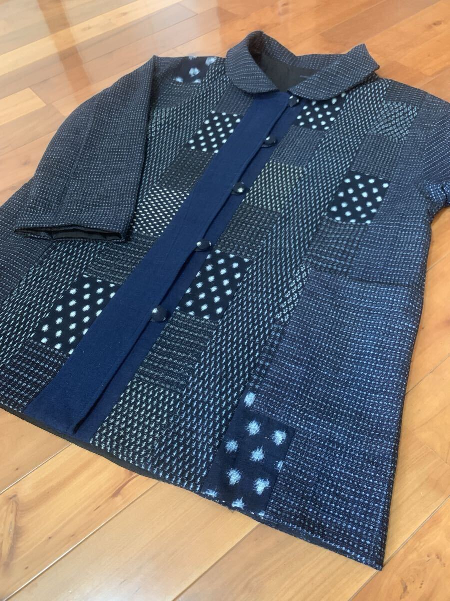 ☆雪ん子.蚊絣.藍染木綿でパッチワークを施しアクセントにしました。