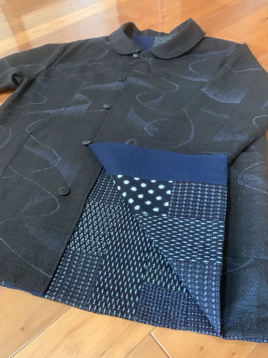 本場久留米書生絣と結城紬をホームクリーニングしてリバーシブルハーフコートにリメイクしました。
