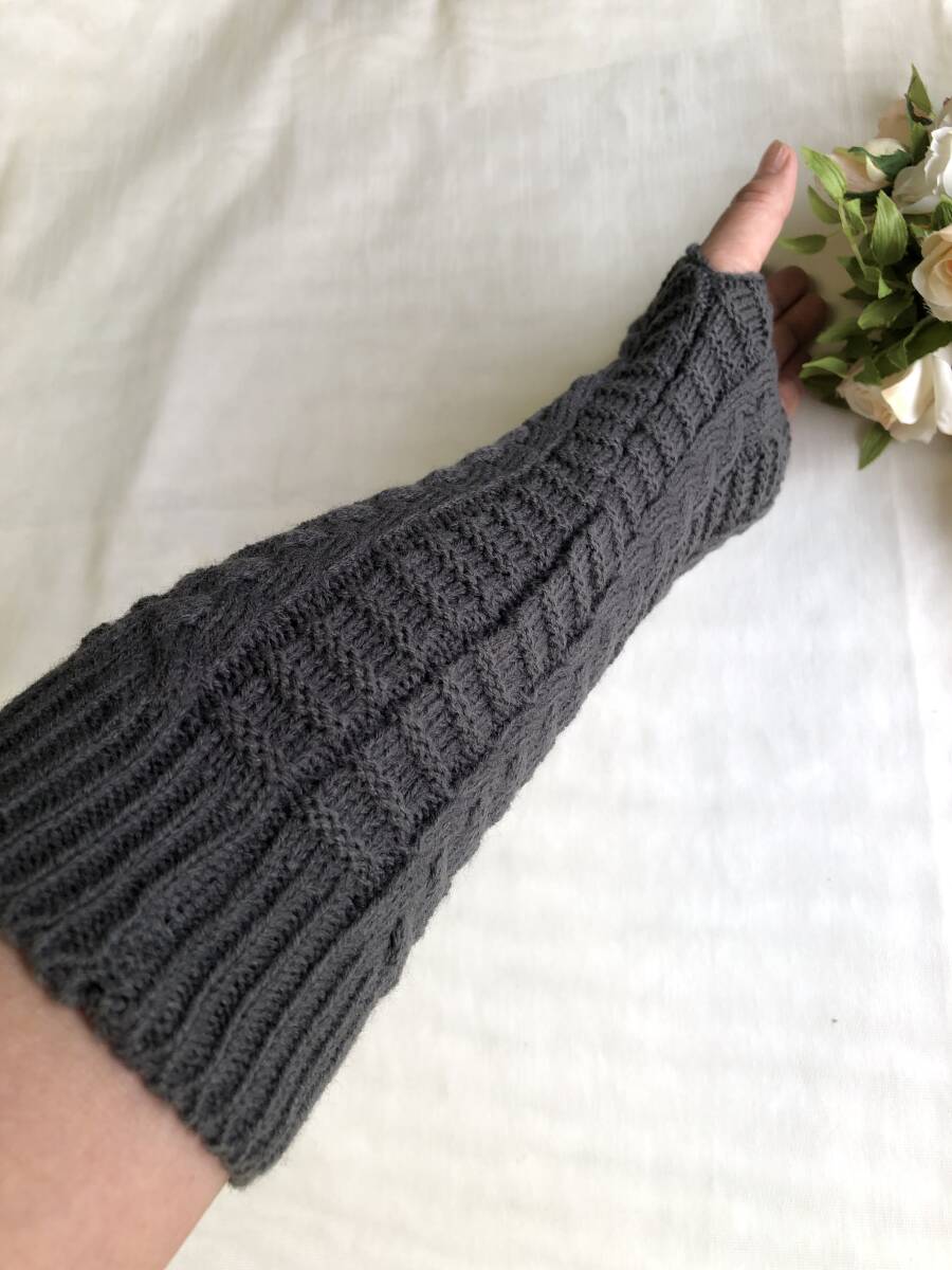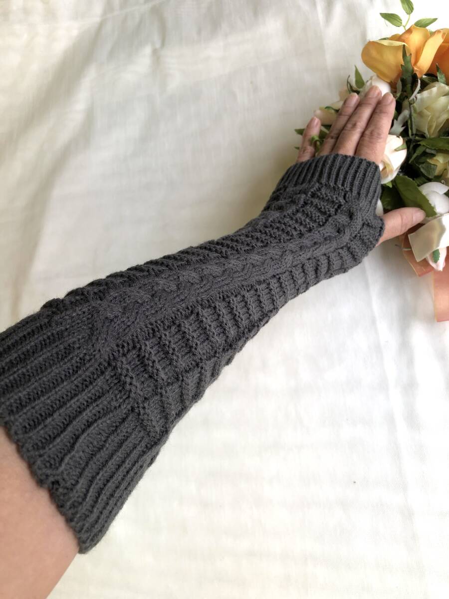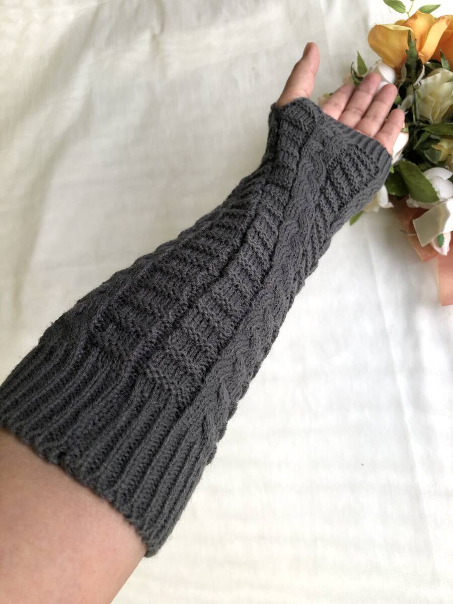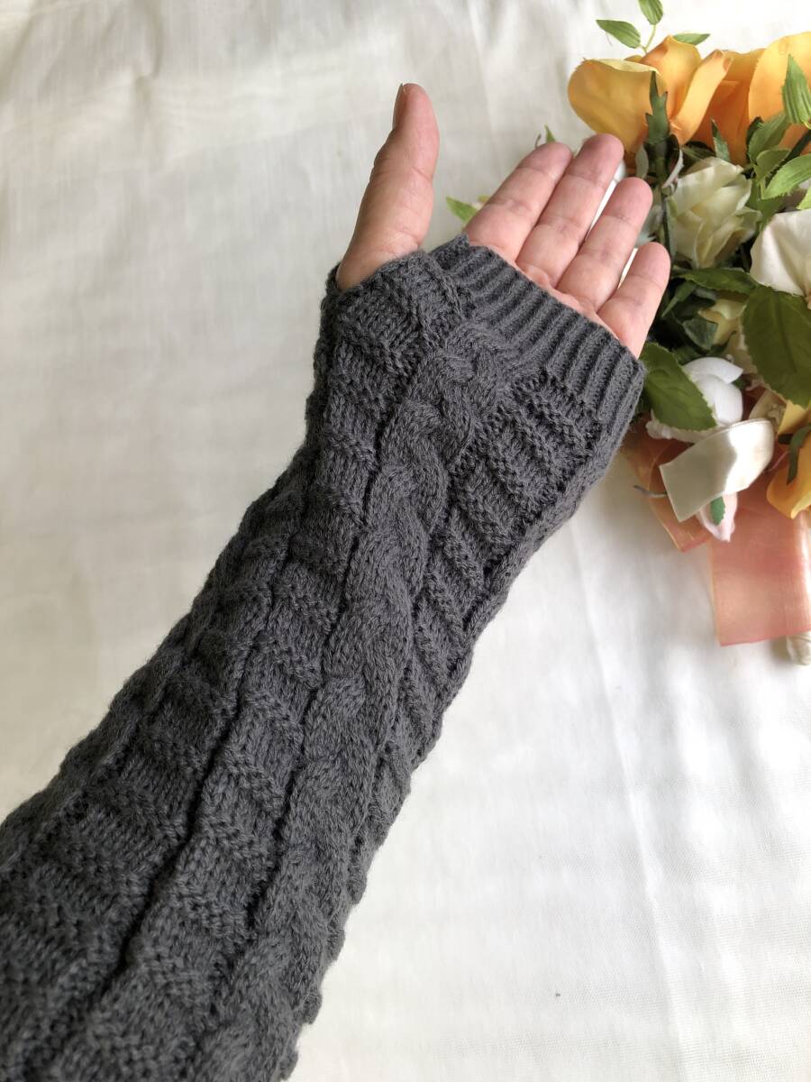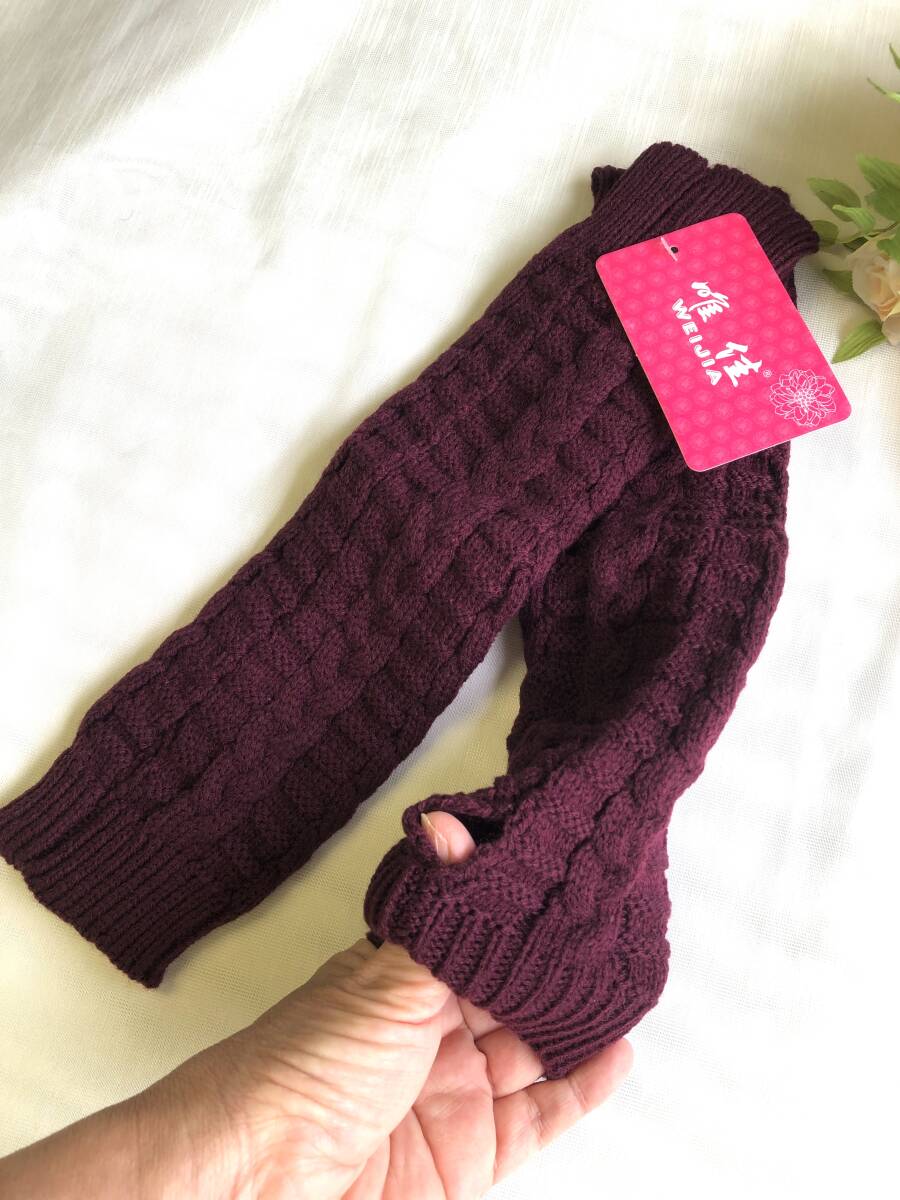 新品・タグ付き 手袋 指先が出るタイプ エンジ 送料180円 縄編み入り