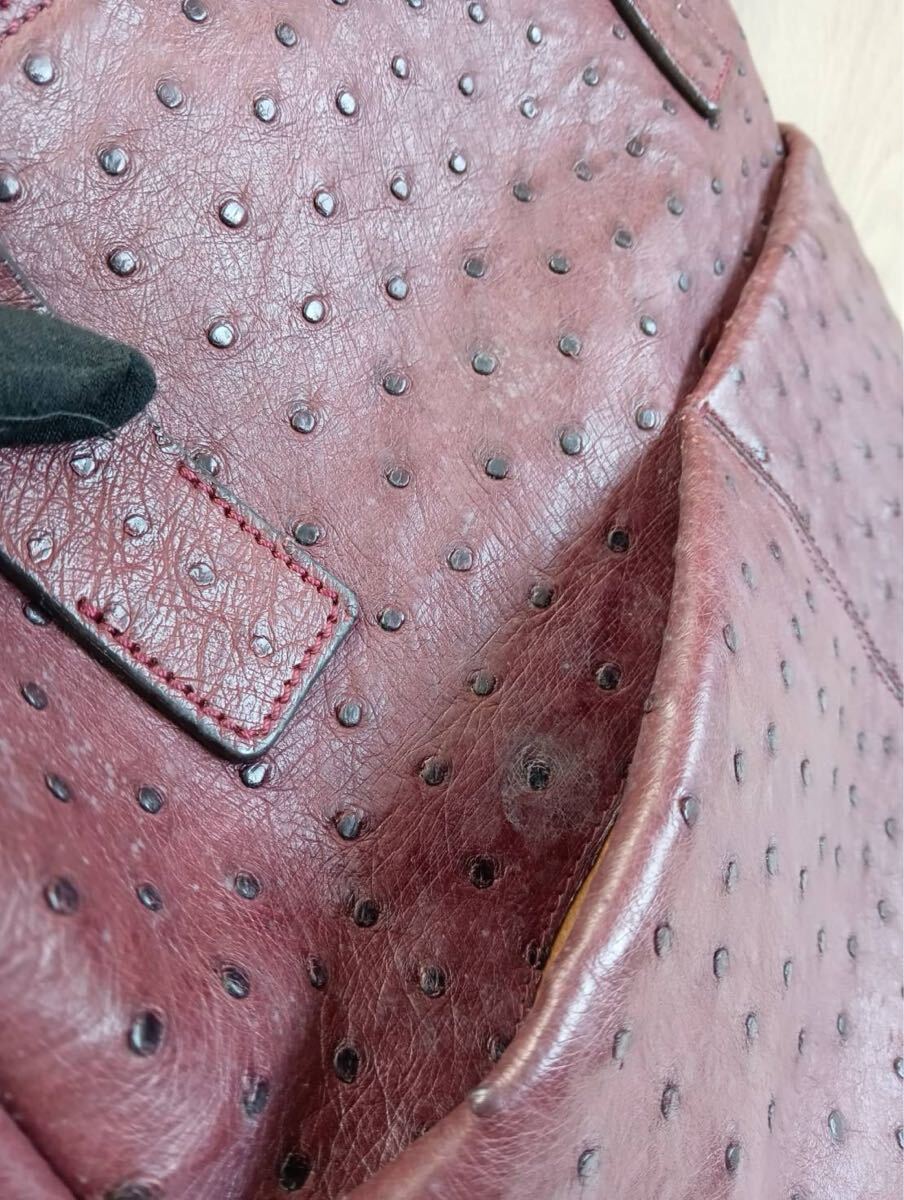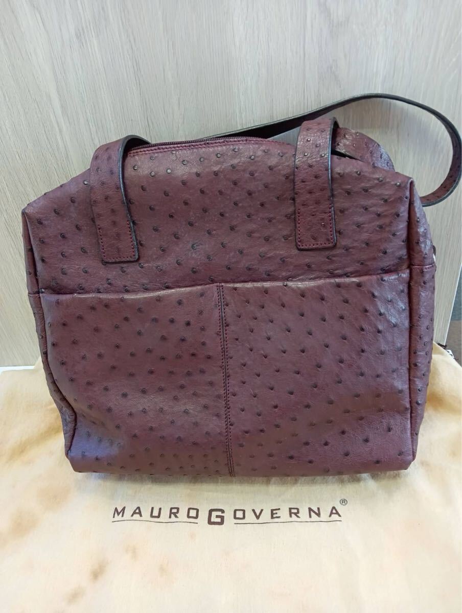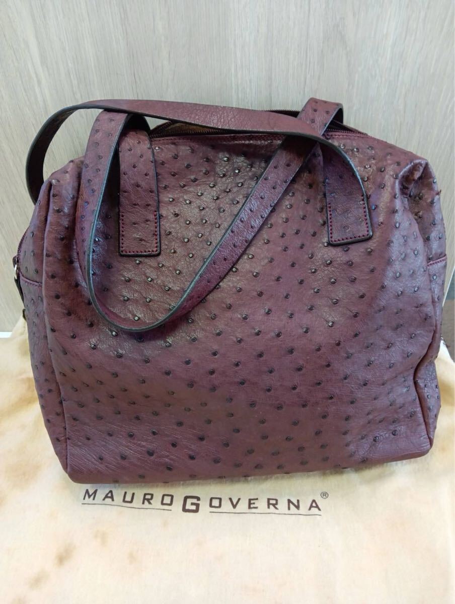 MAURO GOVERNAマウロゴヴェルナ オーストリッチレザー ハンドバッグ 肩掛け 手提げ バッグかばん 保存袋付き 現状品