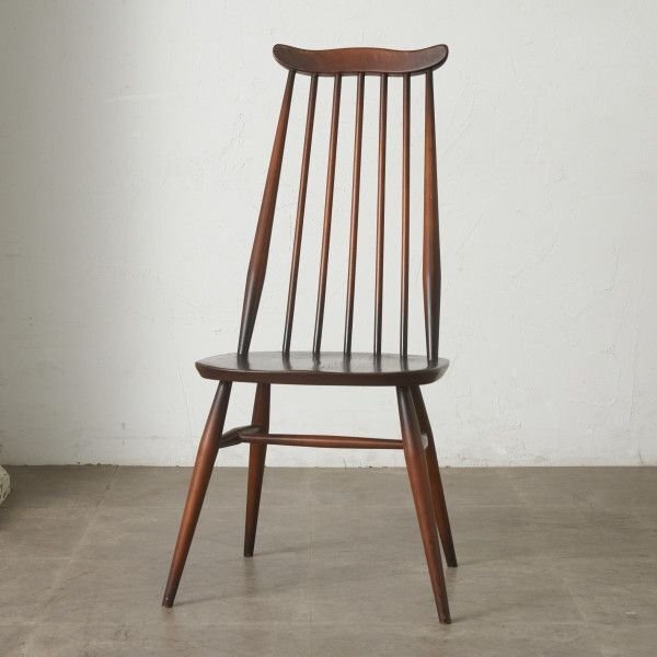 金細工師という名を持つこのイスは、アーコール社の椅子の中でも発表当時から一番人気のモデル。スタンダードなコームバックのウィンザーチェアをモチーフにしながらも、座り心地の良いロングスティックの背もたれや広めの座面、カーブを描く飾り木などが特徴です。実用性と程よい装飾性、個性を備えたデザインアレンジが施されています。