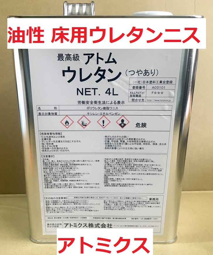 床用ニス 屋内木部 アトムウレタン つやあり 4L(3.8㎏) 特殊変性ポリウレタン樹脂 アトミクス