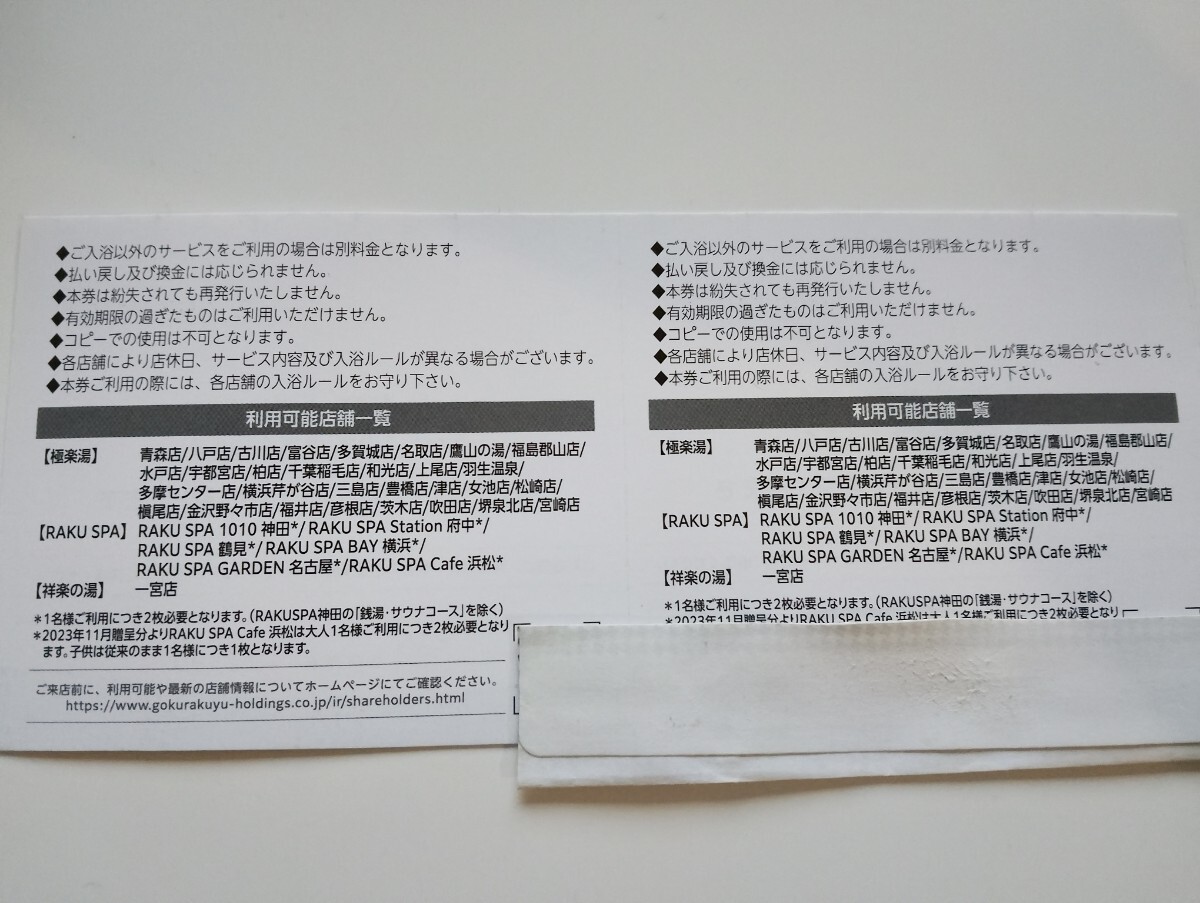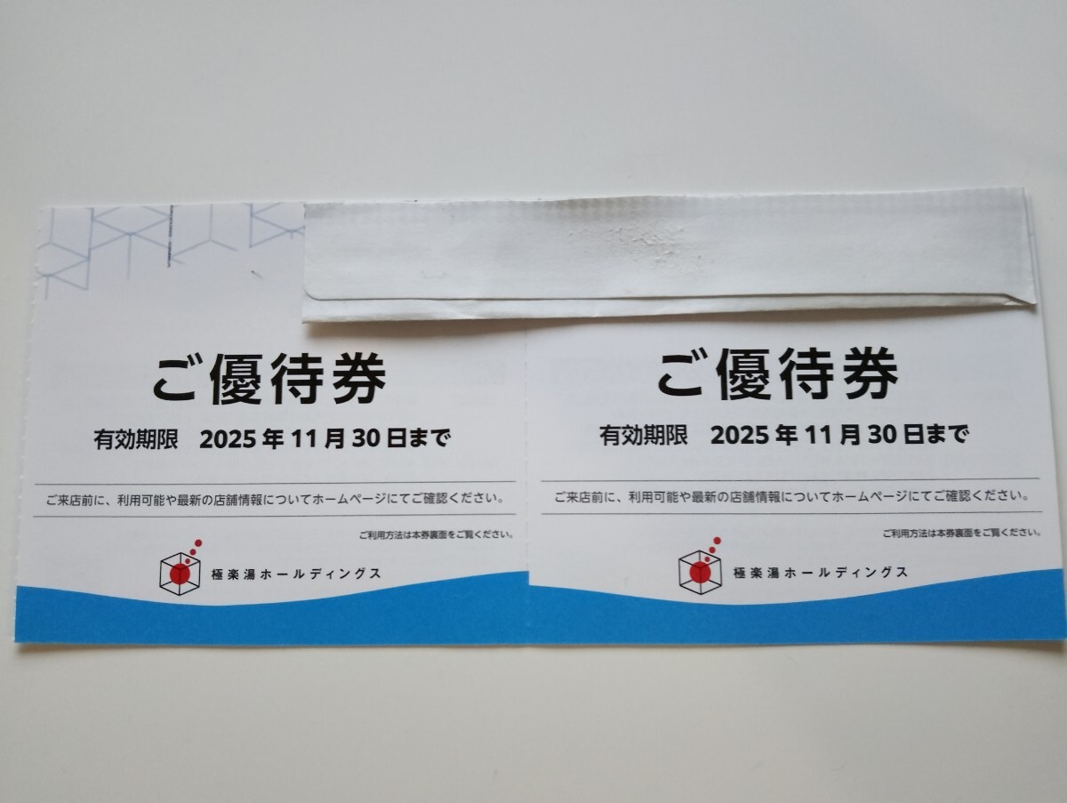 極楽湯 優待券 2枚 RAKU SPA 株主優待 有効期限11月30日まで