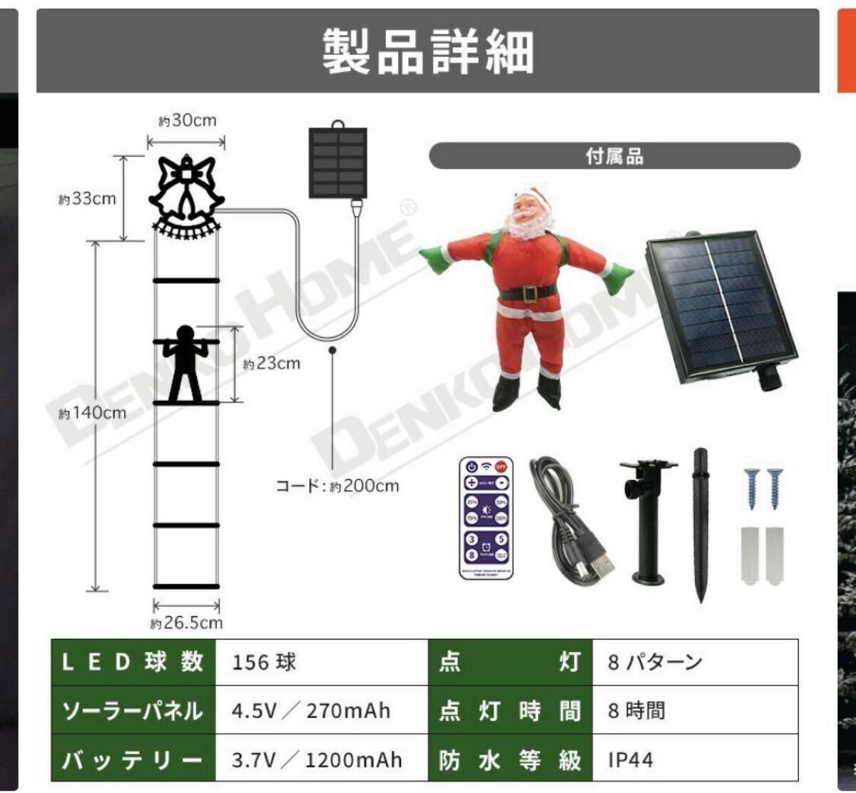 品名ソーラー イルミネーション はしごサンタ