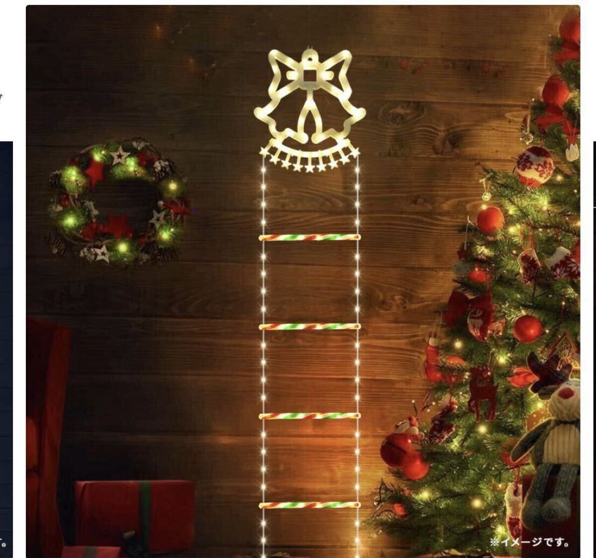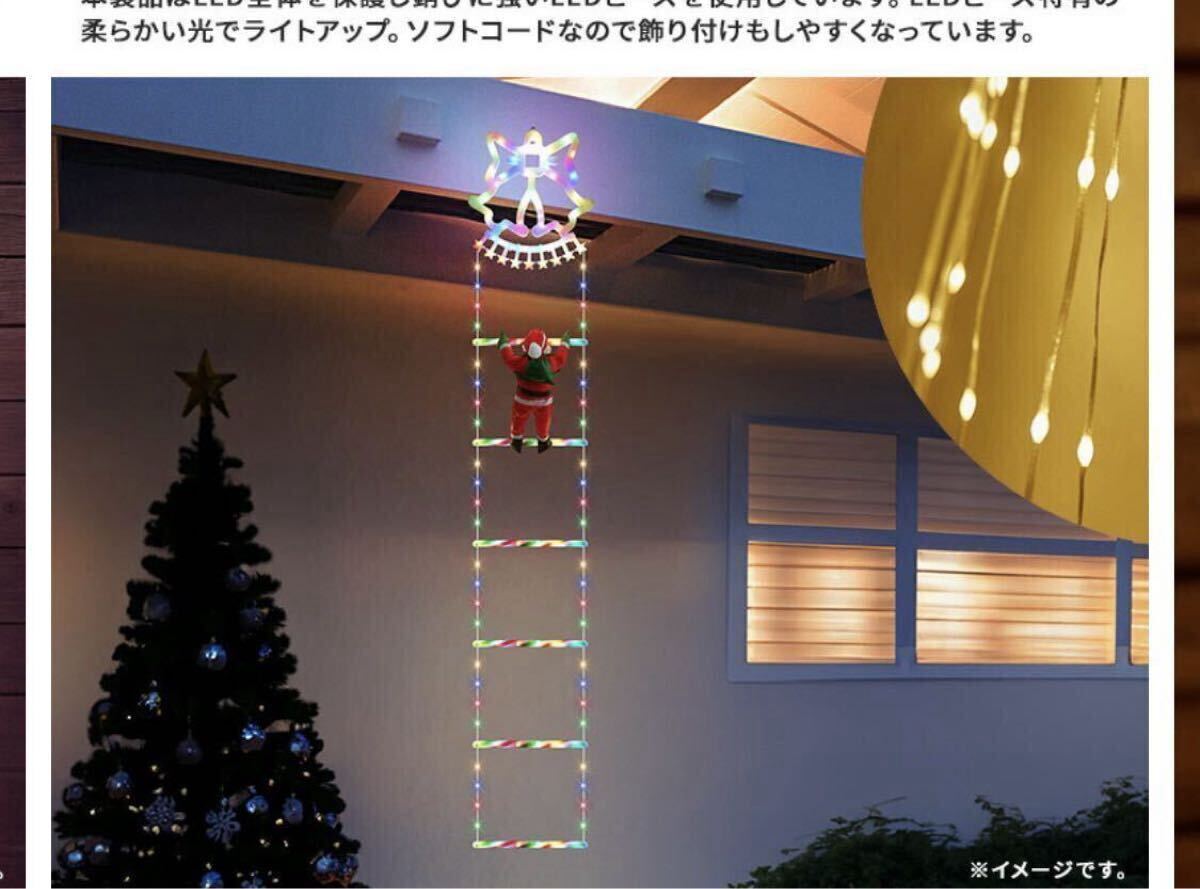 輝く梯子をサンタが登る、かわいいイルミネーション。単調になりがちな壁面やベランダの飾りに追加して、遊び心あふれる演出が可能です。他とは違う飾り付けにオススメ。