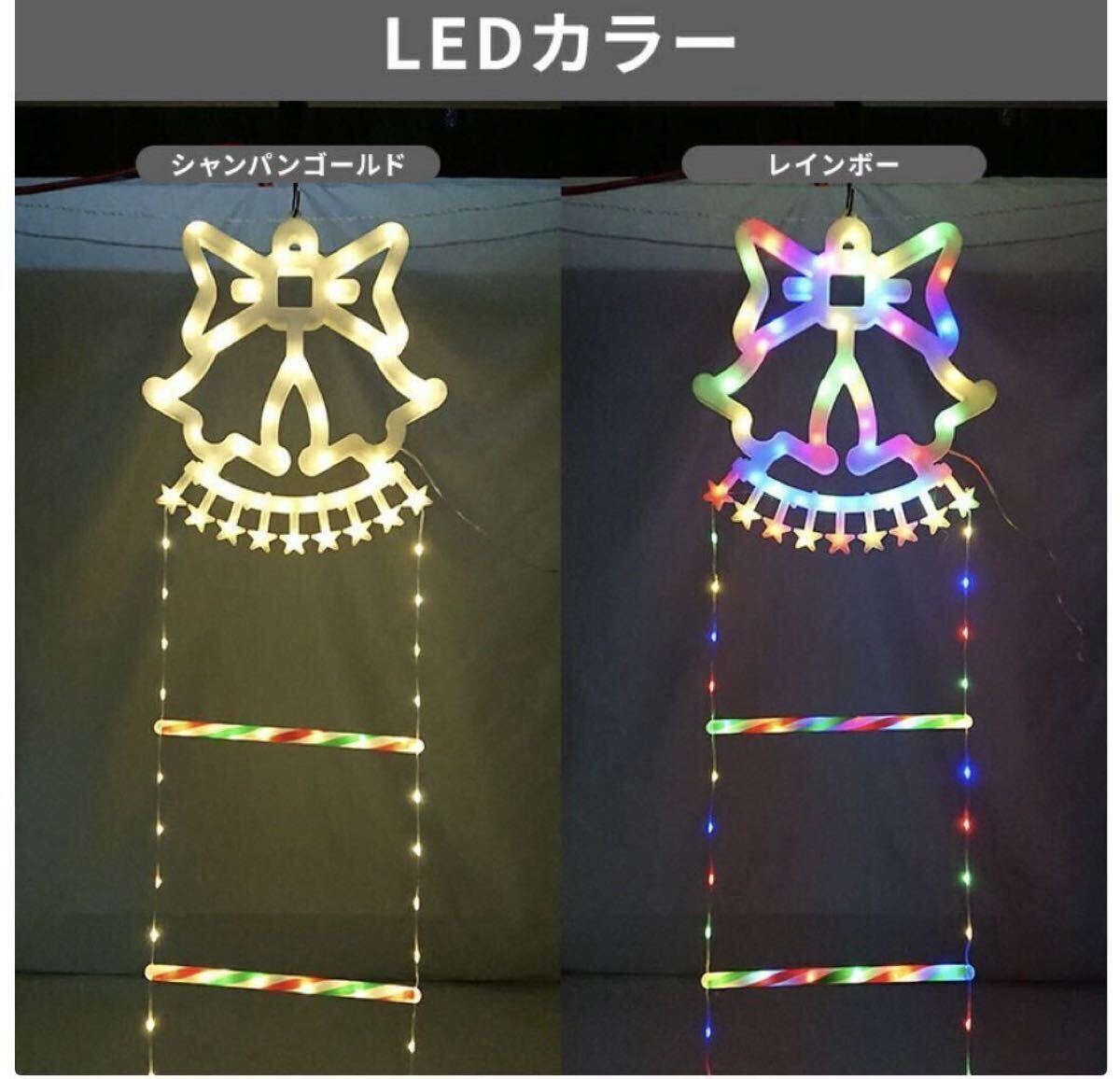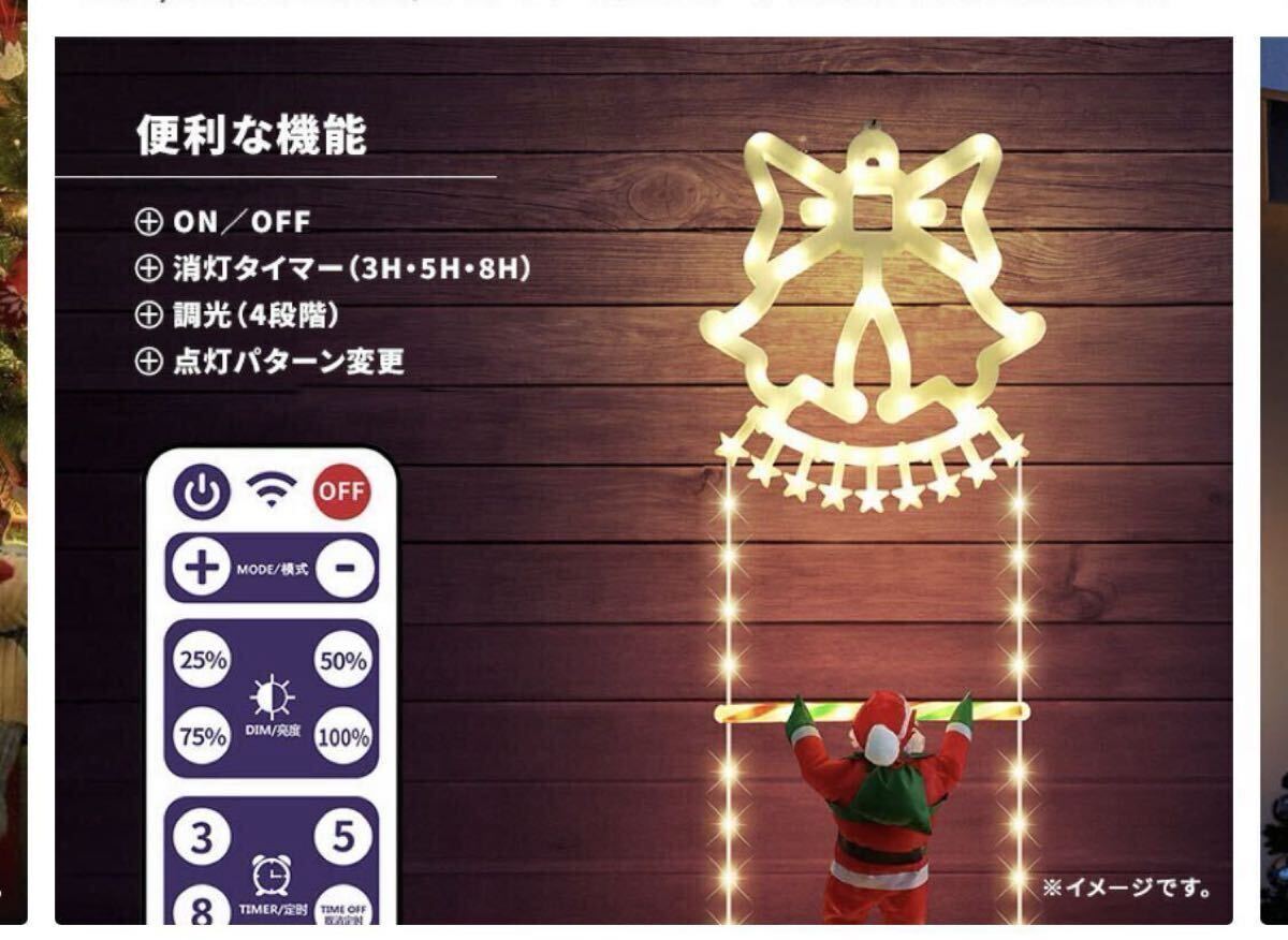 ソーラー イルミネーション はしごサンタ クリスマス飾り ベルモチーフ 2WAY充電 ゴールド色 リモコン 屋外用 防水 かわいい led ロープライト サンタクロース 梯子 電飾 オーナメント 調光 消灯タイマー 自動点灯 USB充電 ベランダ 庭 樹木 玄関