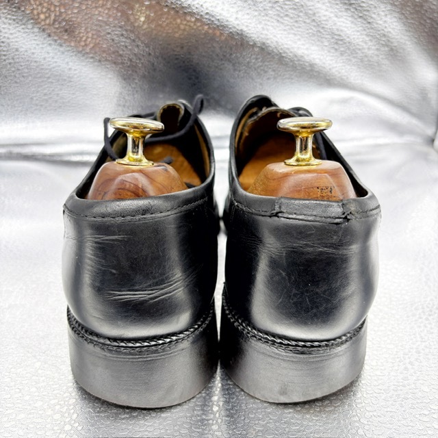 ご覧いただき、ありがとうございます。 オシャレで高級感のあるLAVORAZIONEのビジネスシューズです。 デザイン性:機能性共に定評のある商品です。 1足押さえてあるとファッションの幅も広がり大活躍するお勧めの商品です。 中古品のため、スレや傷、ヨゴレ等ありますが、その分お値打ちにしております。詳しい状態は画像でご確認ください。 商品のサイズについて 表記サイズ 25.0cm アウトソール全長 約27.0cm 全幅 約9.7cm (素人採寸) ●状態①「外観」 履きジワ、着用に伴う擦れ、傷がございますが、着用に支障はございません。くわしくは画像で確認ください。 ●状態②「ソール・インナー」 インソール内残っています。 ●その他・付属等なし、シューズキーパーは撮影用です。 | |||