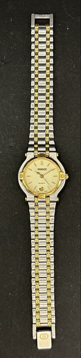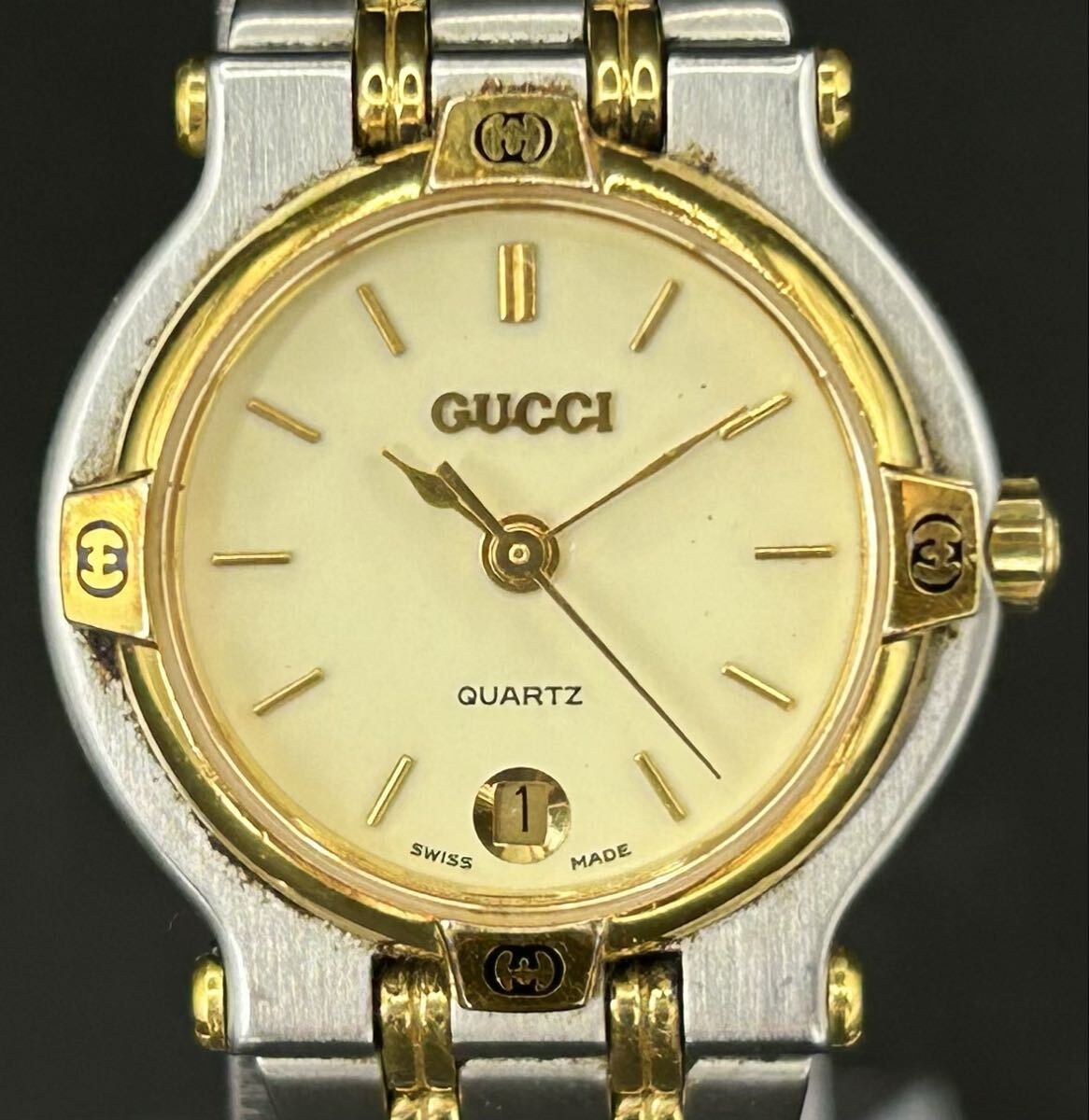 【STK5277】GUCCI グッチ 腕時計 QZ クォーツ 9000L アイボリー文字盤 デイト ゴールドカラー シルバー 3針 レディース