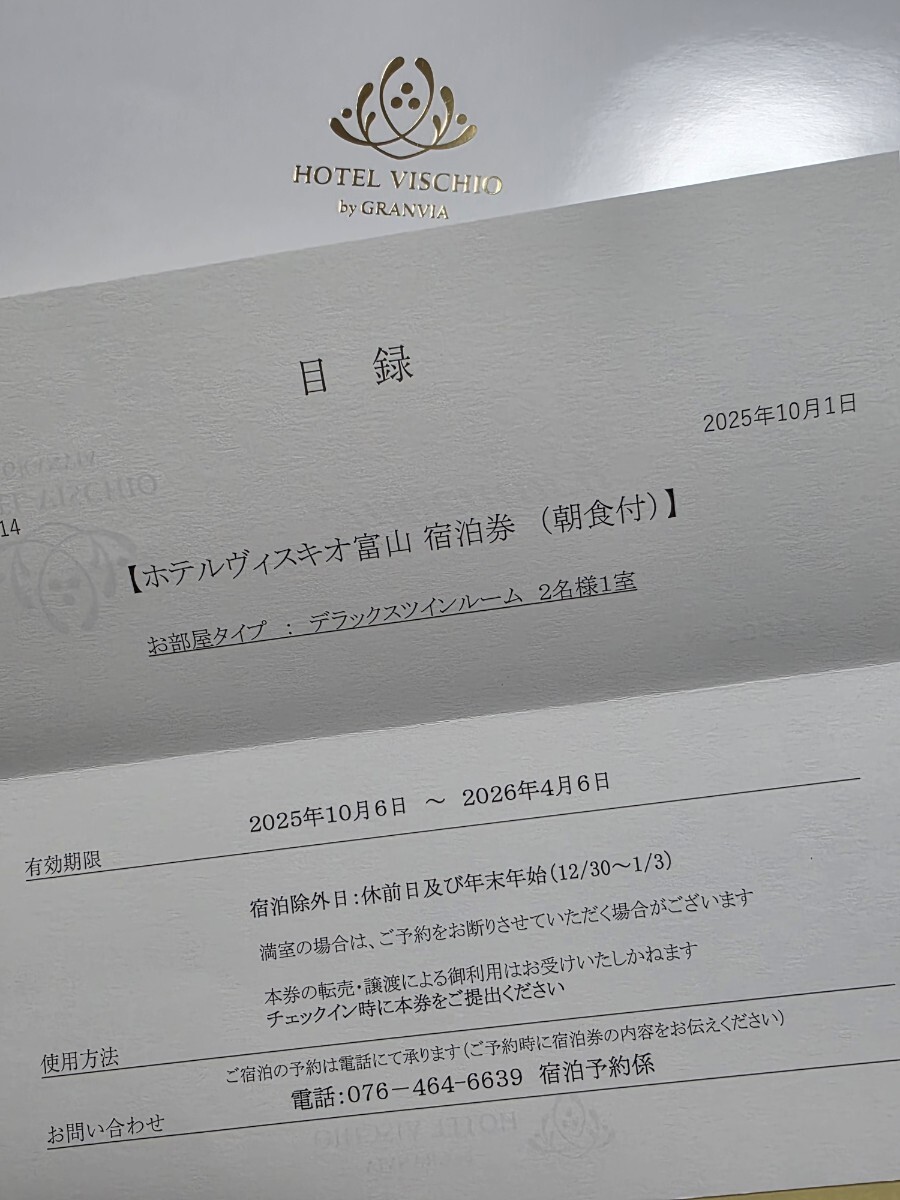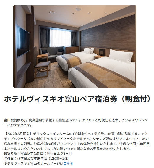 ホテルヴィスキオ富山(寿司食べ放題朝食付)ペア宿泊券