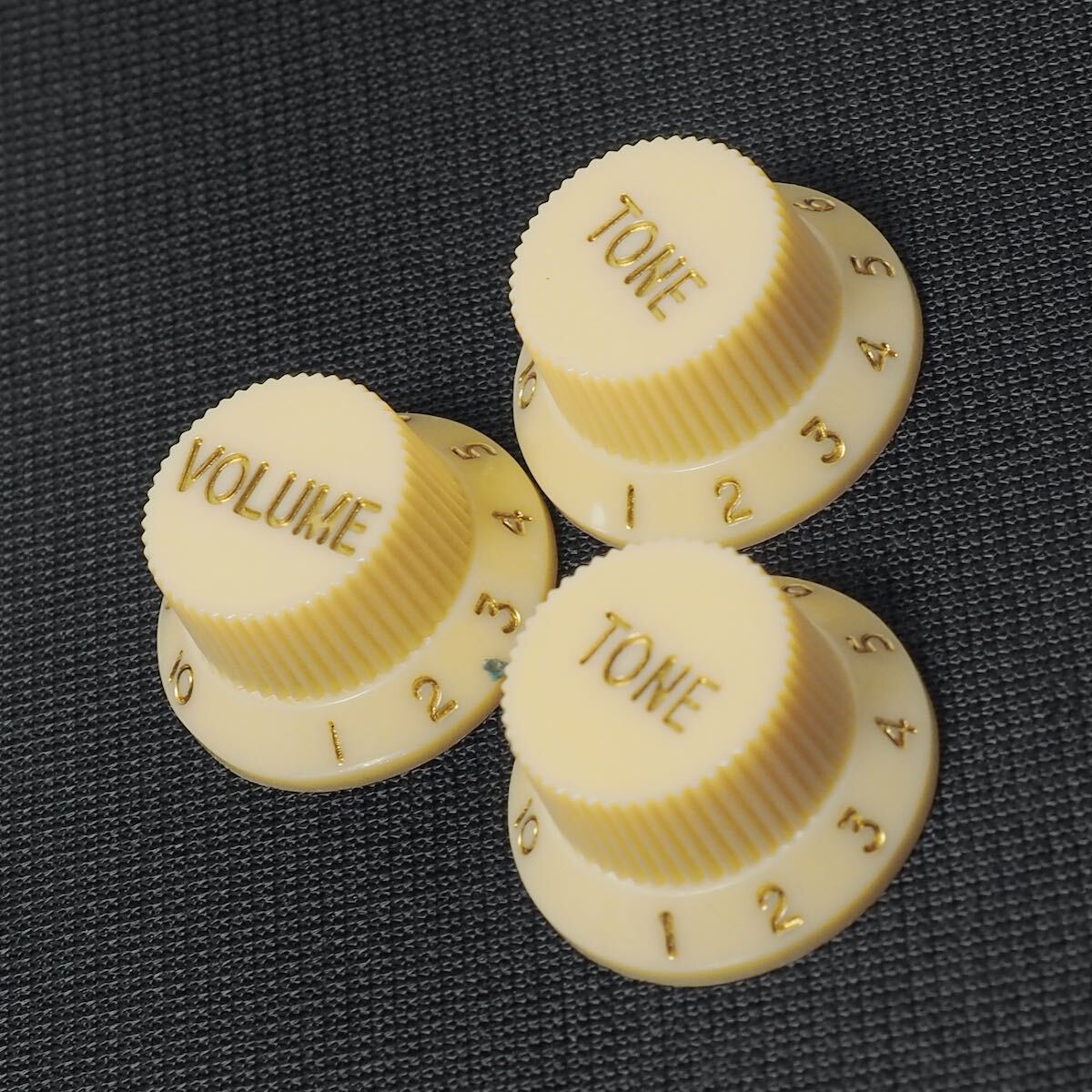 ツマミは、Volume x 1、Tone x 2の3個セットで、ミリ規格のエレキギター等に適合します。Made in USAなどのインチ規格のPotには非対応です。