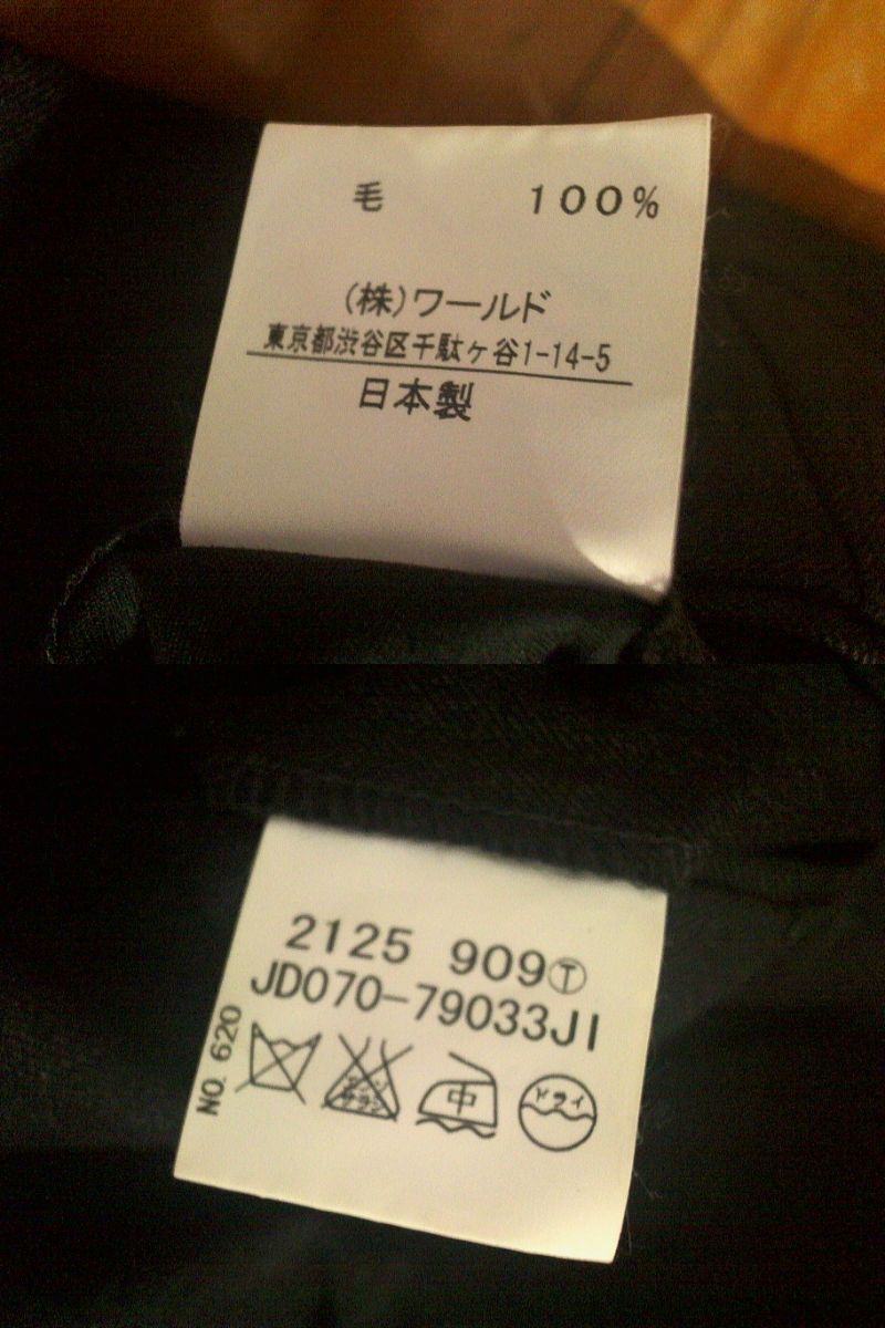 商品説明 | ●評価は必ず折り返し評価とさせて頂きます。ご不要の際は当方へのご評価もご遠慮ください。評価を入れられますと、必ず折り返して評価を入れさせて頂きます。 ●値引き対応は承っておりません。返答も致しませんので、予めご了承願います。 注意!『配送方法と送料』に記載している発送方法は、すべてご利用できます!購入手続き画面には設定されている配送方法のいずれかが表示されており(ほとんどの場合、お手軽便ゆうパック、ゆうパケットetc)、配送方法欄の[v]をクリックして展開すると、ご希望の配送方法を選択することが可能です。ご決済の欄でお手軽便しか使えない様な自動計算された画面になる様ですが、ナビ開始後の上記の方法でご選択ください。 ご覧頂きありがうございます。 毛素材のツイル系で、黒かほぼ黒に近い濃いグレー系で、真っ黒ではない感じです。。 こちらの週品は中古商品のなります・ 目立つシミ、穴ダメージなどは見当たらず綺麗です。 [表示サイズ] 4 [カラー] 画像をご認願います。 [素材表示] 毛100 [実寸平置きサイズ] W:45 H:51.5 わたり:29.5 股上:24.5 股下:87 裾:19 ※首廻りも2ツ折にして平置き計測です。2倍にしておおよその首廻りです。 ※単位は全てcmです。 ※素人計測につき、多少の誤差はご容赦ください。 [原産国] 日本 下記は同梱可能です。階数をクリック。 1階夏物メイン 2階 ジーンズ/デニム 3階 冬物メイン 4階 オールジャンル |
