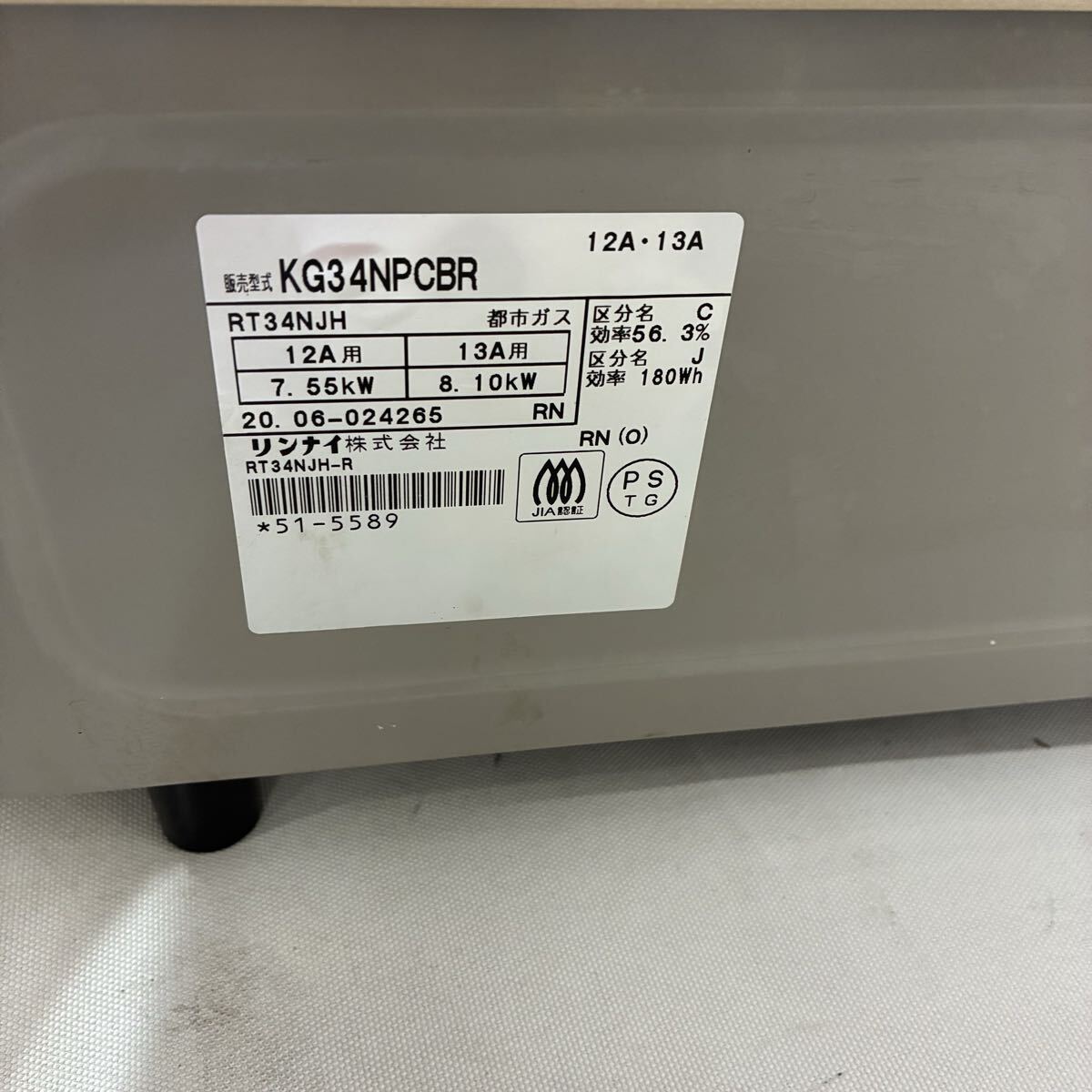 Rinnai リンナイ ガステーブル ガスコンロ KG34NPCB S iセンサー 20年製 RT34NJH 都市ガス 右強火力 56cmタイプ 動作未確認 【中古】