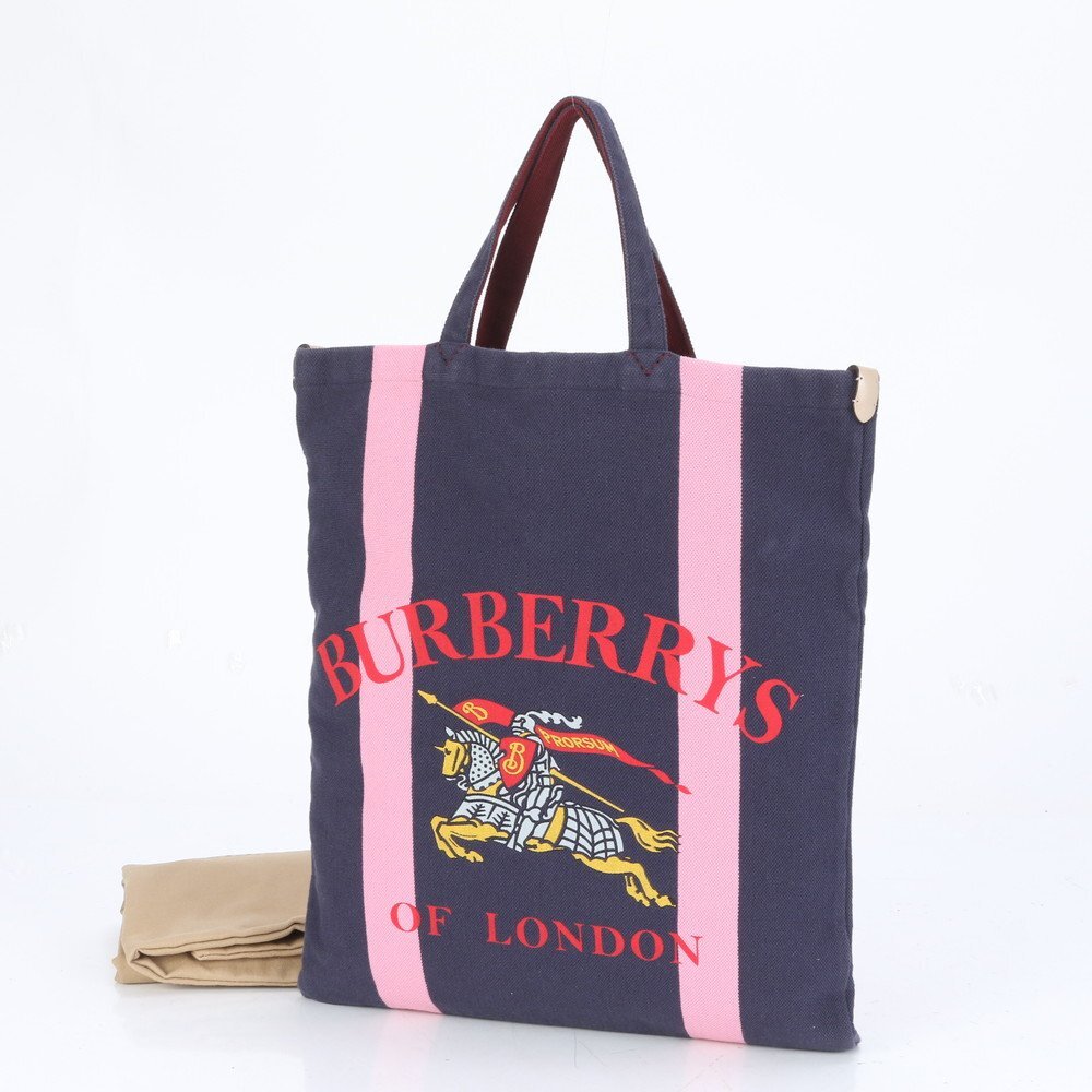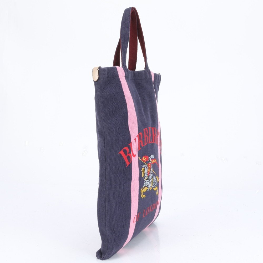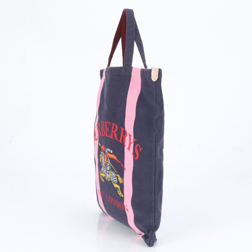 1円■極美品■バーバリー■ホースロゴ トート バッグ 肩掛け ショルダー ハンド A4 ネイビー ピンク レディース EUE CI18-2