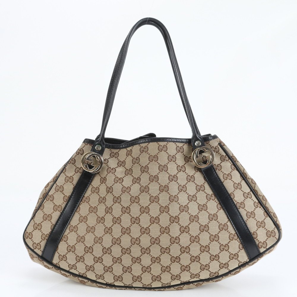 1円■新品同様■グッチ■GG ツインズ レザー キャンバス トート バッグ 肩掛け ショルダー ハンド ブラウン 232963 レディース RCE CU16-4