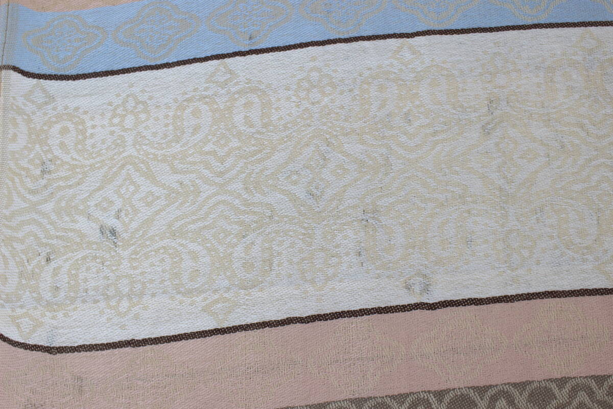 新品、未使用品になりますが、繊細な素材である為、製品上の糸引きや織傷、色、織りむら等がある場合がございますので予めご了承くださいませ。タグは周りの生地が傷む場合がございますので剥がさずにご使用いただく事をお勧め致します。