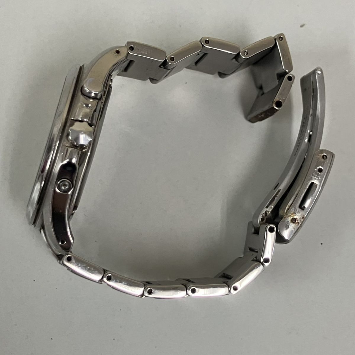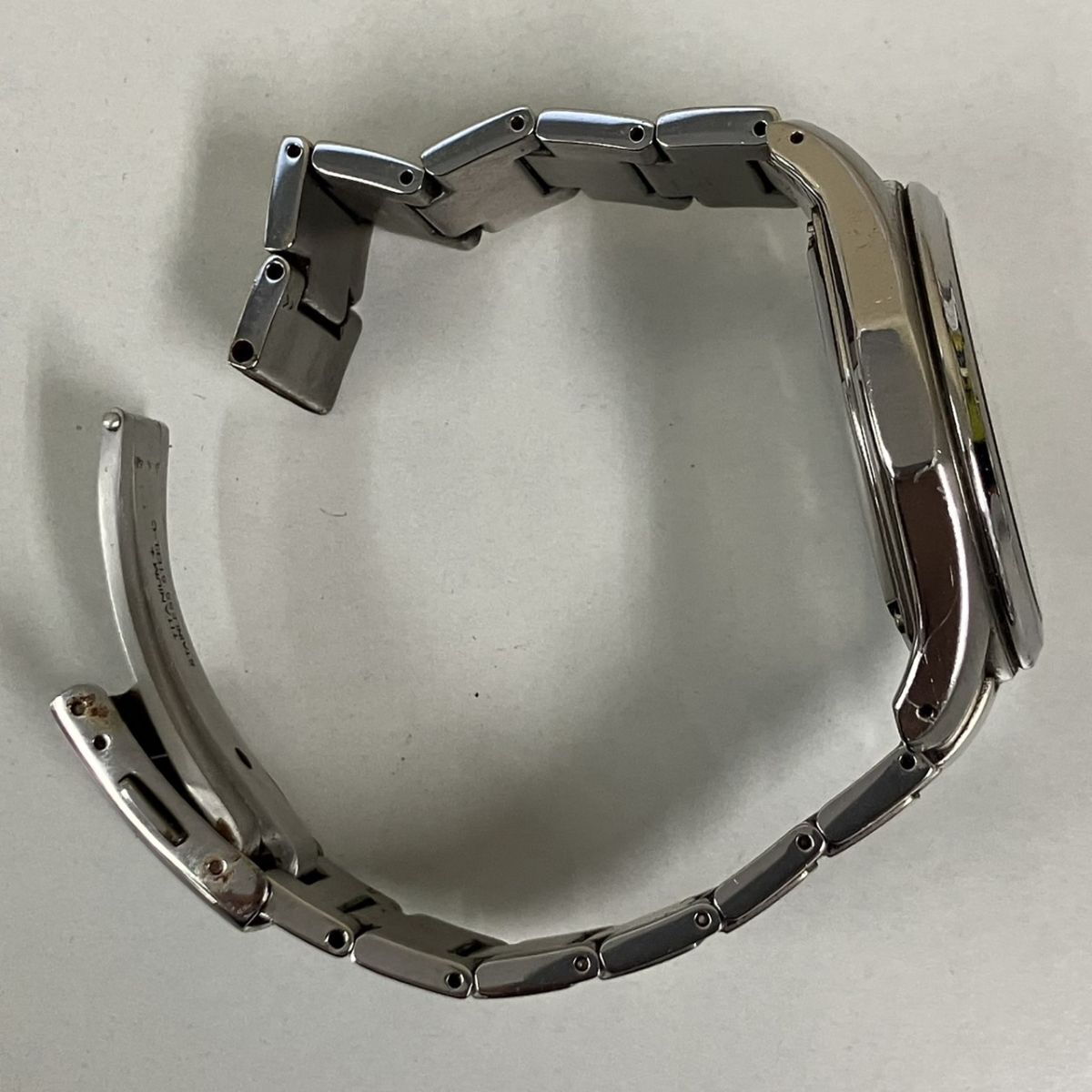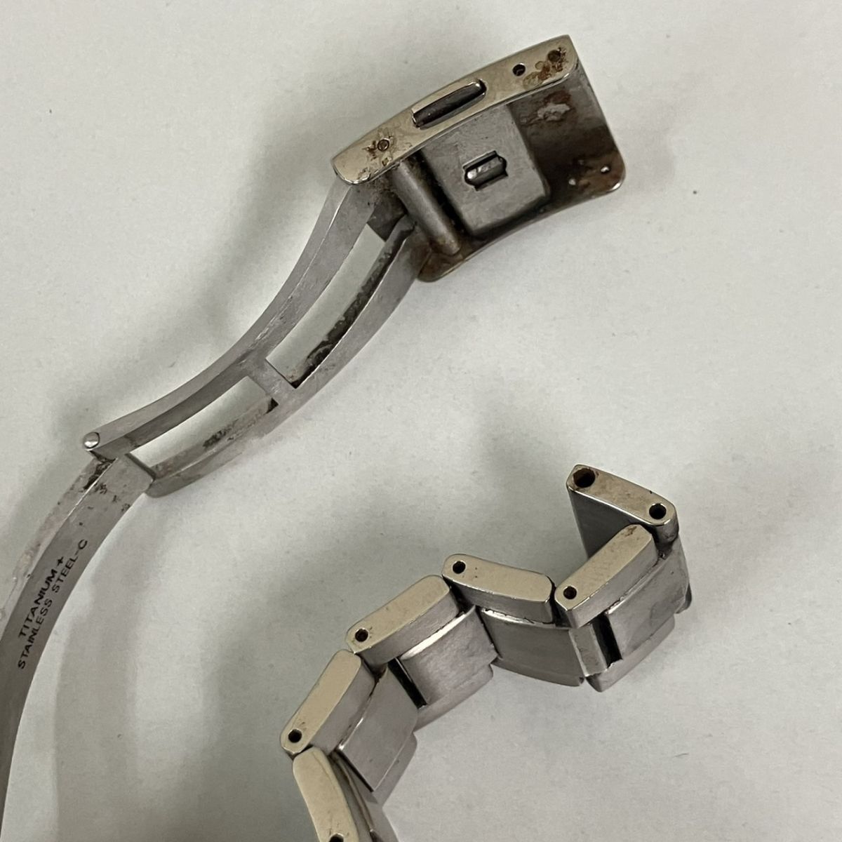 取り扱っている商品は未使用・未開封も含め、全て一度は人の手に渡った一点ものの中古・ジャンク扱いでの商品です。 当方素人ですので肉眼で確認できる簡易的な検品、採寸、および簡易梱包となります。 通電確認済み、動作確認済みの記載のないものは、動作未確認、動作不可の商品となりますので、予めご了承ください。 ※稼働の記載につきましては秒針等の確認のみとなり、全体の動作を保証するものではございません。 また、出品時の中古品の動作状況となりますので、予めご了承の上でご入札ください。 不動の表記につきましてはクォーツ式のムーブメントの場合、動作未確認の状態となります。 電池交換後、不具合があった場合でも返金、返品の対象とはなりませんので、予めご了承くださいますようお願い致します。 細かな日差、オーバーホール状況、社外パーツの使用に関しては保証しかねますので、ご理解いただけた上でのご入札をお願い致します。 上記を踏まえた上で中古品、ジャンク商品として出品させていただいておりますので、全てご理解いただけた上でのご入札をお願いいたします ------------------------------------------------------------------------------------------------ 【サイズ】 直径約38.6mm 腕回り約cm 【付属品】 画像参照 【その他状態】 画像参照 稼働 バックル破損 ----------------------------------------------------------------------------------------------- 画像にあるものが全てです。 他詳細は画像にてご判断ください。 ※目立つ傷や汚れを中心に写真を撮っておりますが、画像に写りきっていない傷等がある場合もございます。予めご了承ください。 ※商品を多数出品している関係で、稀に商品説明や画像に誤りがある場合がございます。予めご了承ください。 こちらのページをご覧いただく際は、商品説明文と掲載している画像の全てを確認いただいた上でご入札ください。 | |||||||