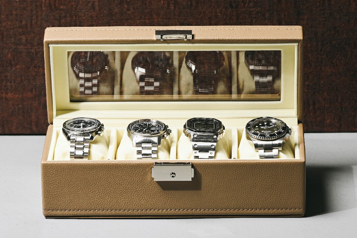 【2024年新製品】【綺麗な新色ベージュカラー完成! 】合成皮革 4本収納時計ケース ウォッチボックス /時計ケース /ウォッチケース/腕時計