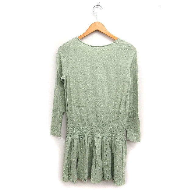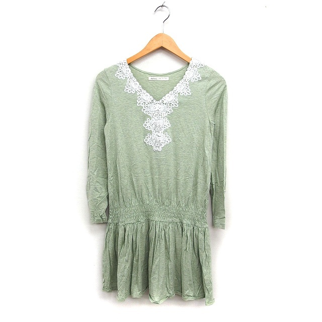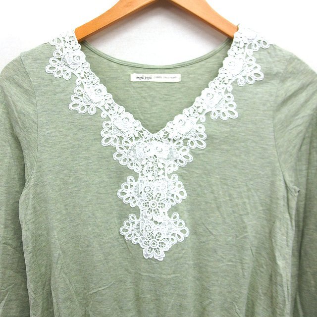 conges payes ADIEU TRISTESSE レース付き チュニック 長袖 Vネック コットン 綿 ライトグリーン 薄緑 /FT24 レディース