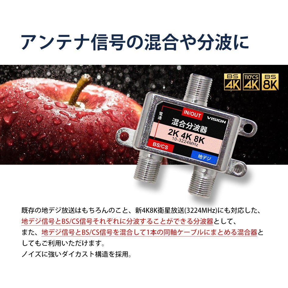 <VISIONシリーズ 混合分波器 4K 8K 対応 TV テレビ アンテナ 3.2GHz F型 地デジ BS CS 衛星放送>
