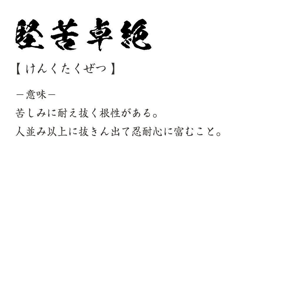 堅苦卓絶 (けんくたくぜつ) 書道家が書く プリント Tシャツ S M L XL XXL 120 130 140 150 G-S G-M G-L 【 四字熟語 】