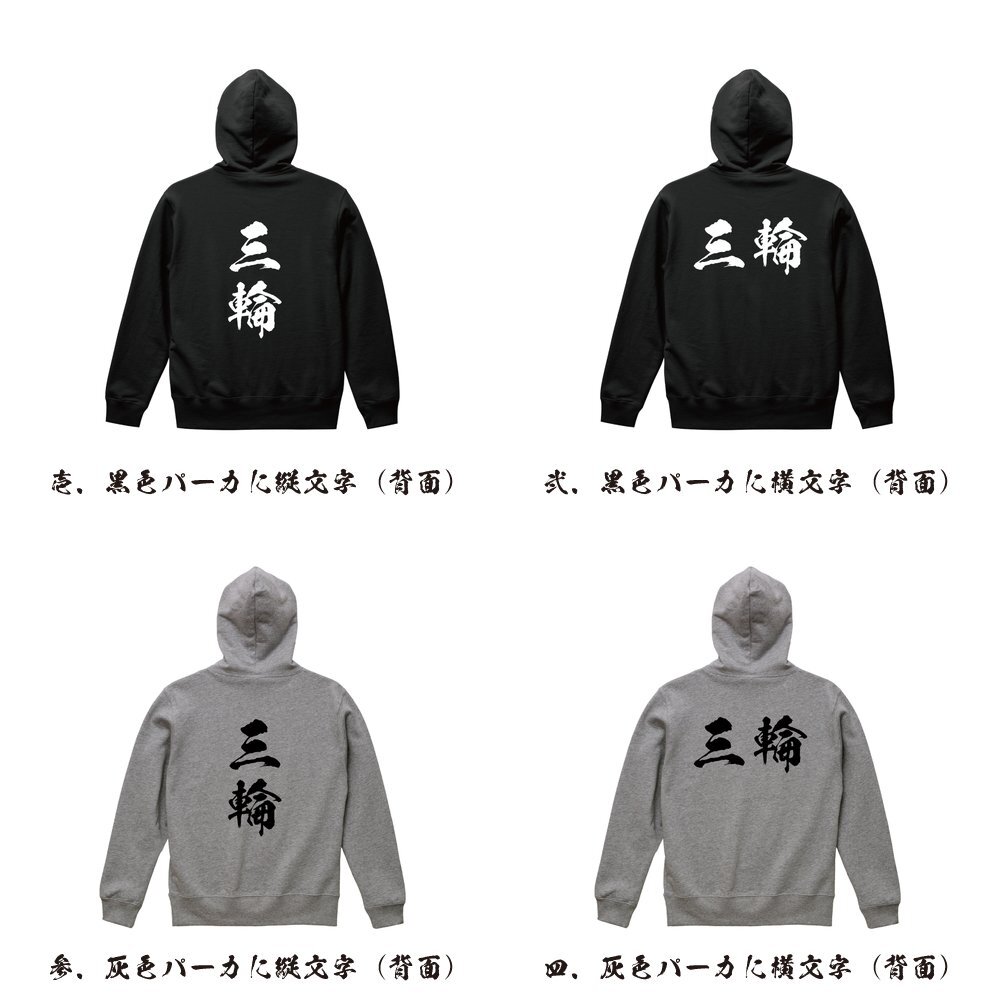 三輪 書道家が書く デザイン フルジップ パーカ 【 名字 】 メンズ レディース キッズ
