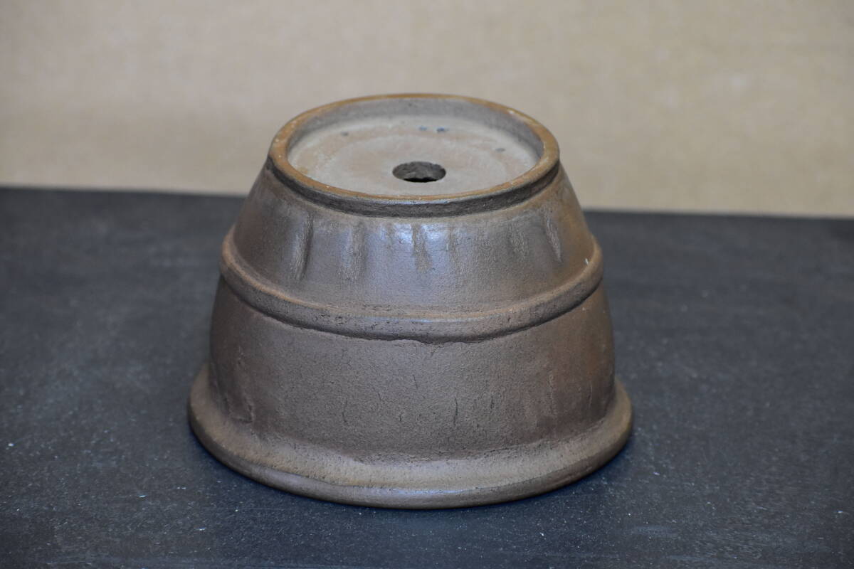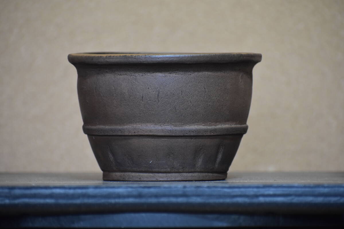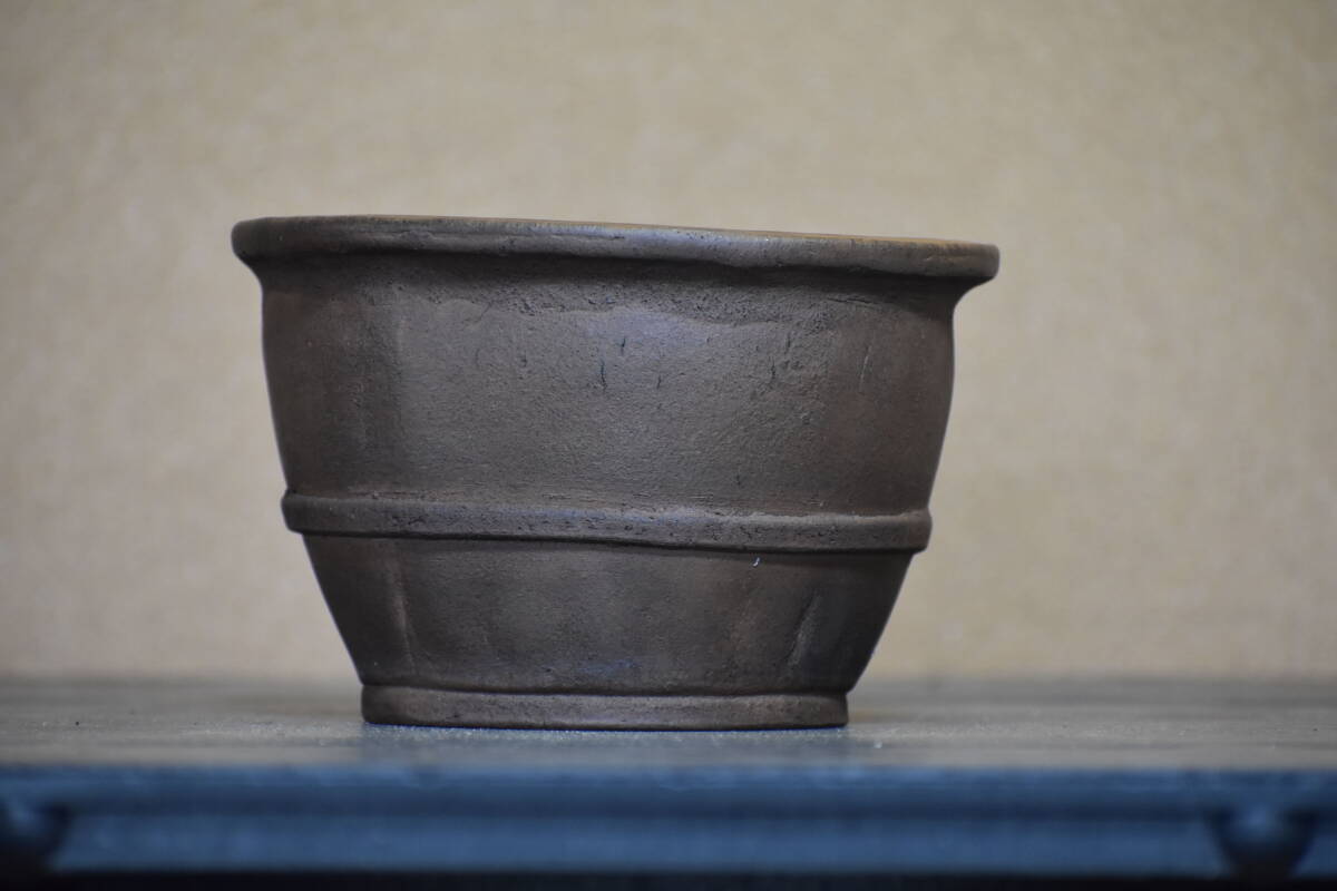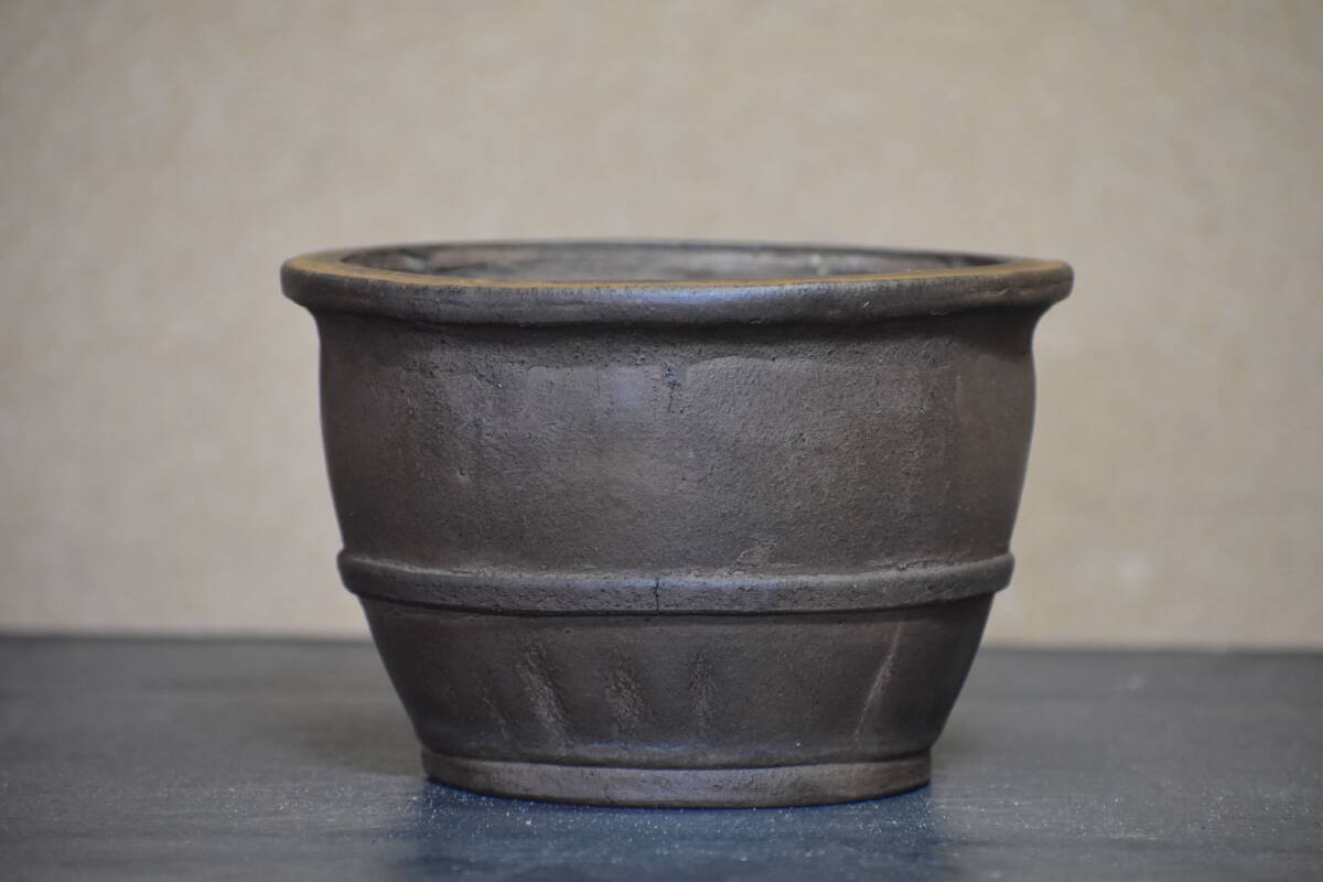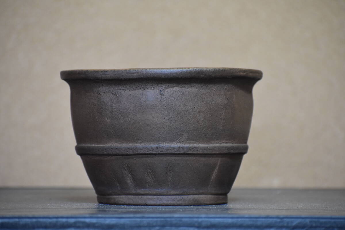 【鈴木舟山】 超希少な珍品 外縁胴紐丸鉢 間口約15.5cm 人気和鉢作家 超希少品 小品盆栽