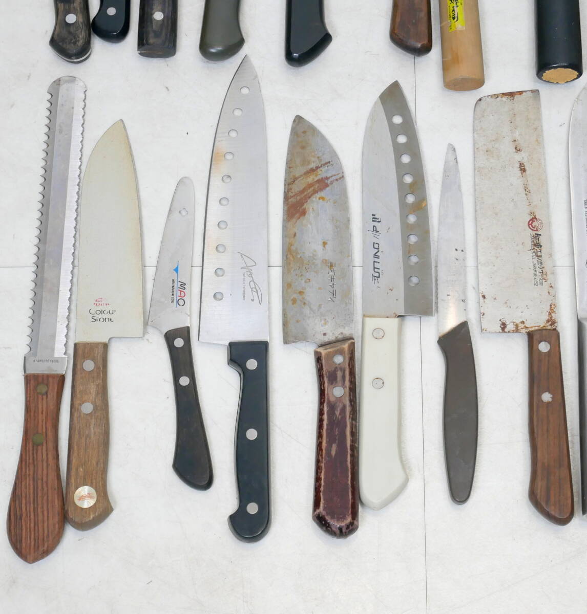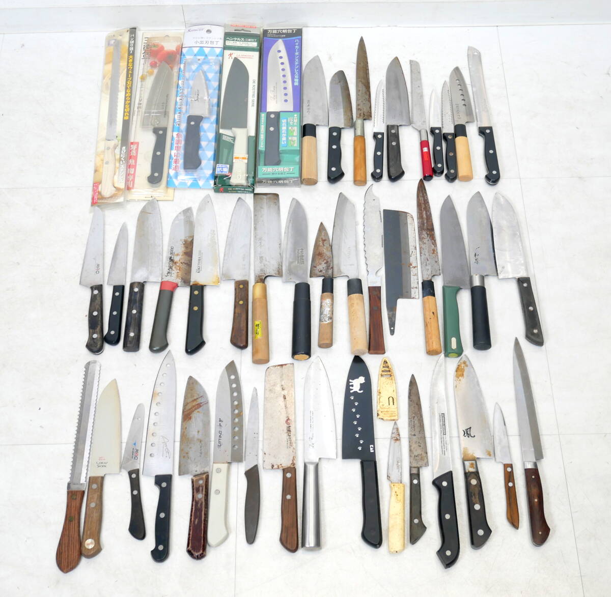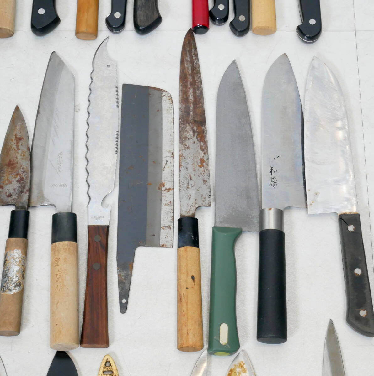 ▲(R710-H1) 1円~ 包丁大量まとめ 計47本 出刃包丁/万能包丁/パン切り包丁/刺身包丁/ペティナイフ/菜切り包丁 和包丁 洋包丁 調理器具 | ||