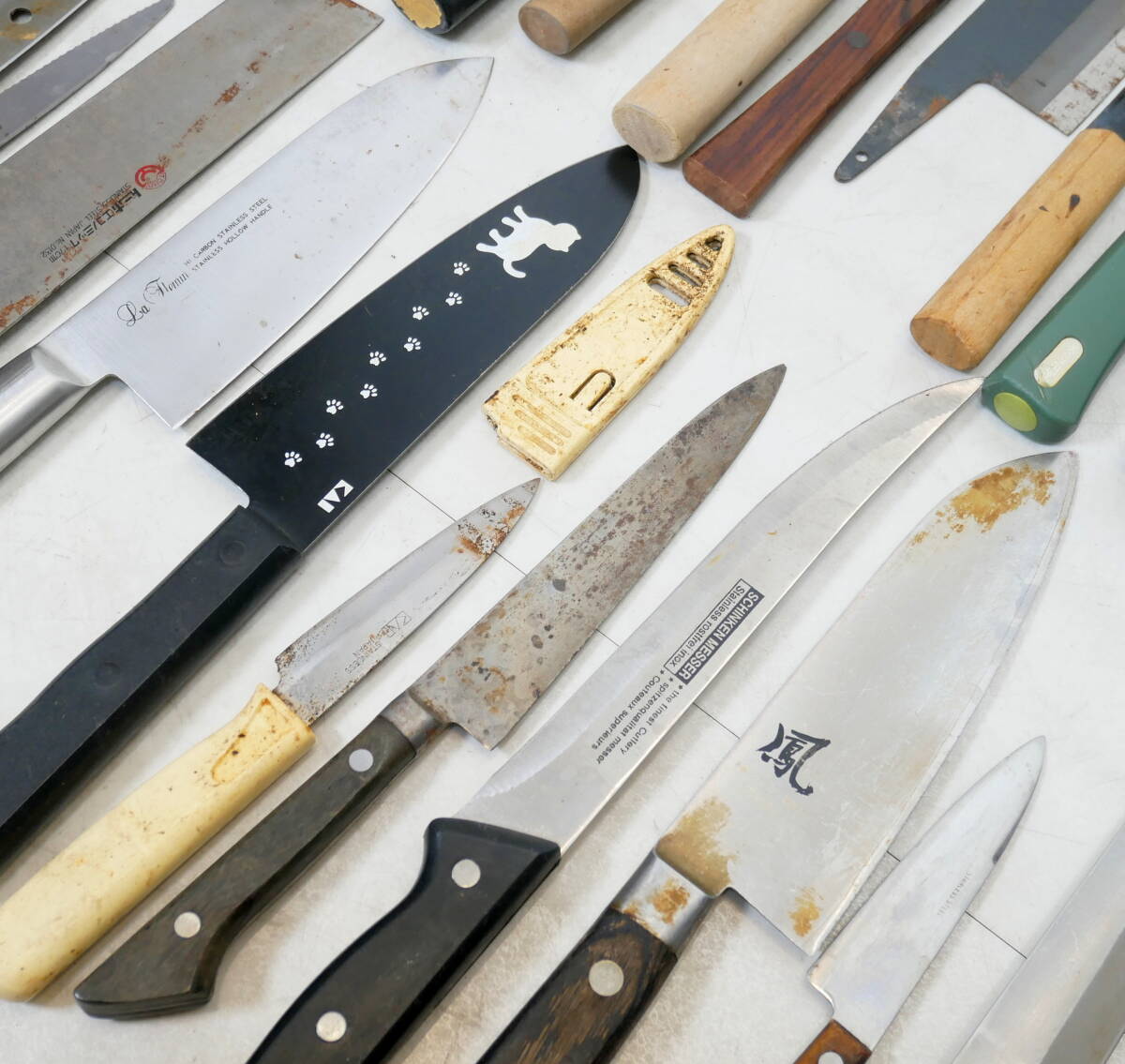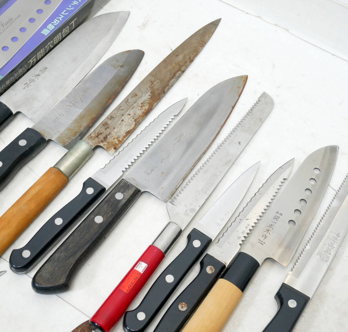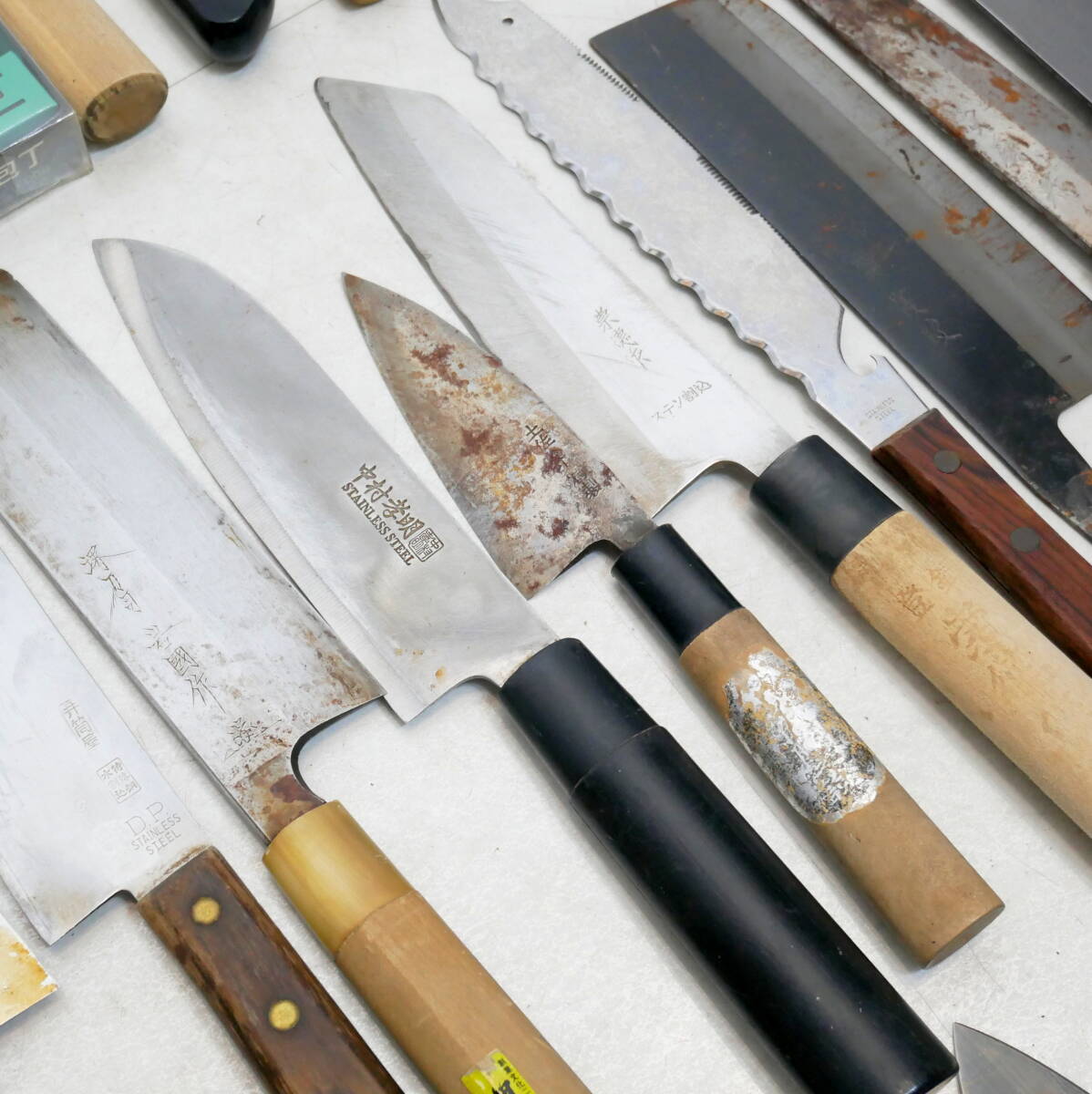 ▲(R710-H1) 1円~ 包丁大量まとめ 計47本 出刃包丁/万能包丁/パン切り包丁/刺身包丁/ペティナイフ/菜切り包丁 和包丁 洋包丁 調理器具 | ||