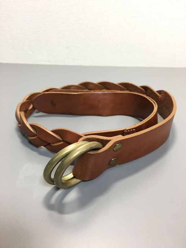 RALPH LAUREN ラルフ ローレン 編み込み イントレチャート レザー ベルト ブラウン S