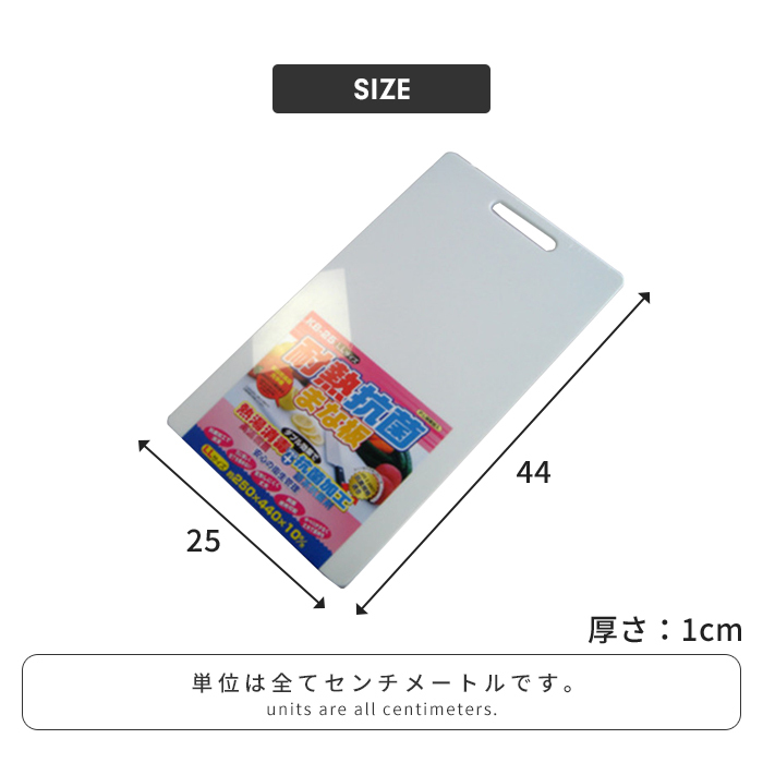※【同シリーズ】のリンクは当店のヤフオク店のページへ進みます。 【耐熱抗菌まな板】 ● SS(16×28cm) ● S(18×32cm) ● M(21×37cm) ● L(23×41cm) ● LL(25×44cm) ※このページは[耐熱抗菌まな板 LL(25×44cm)]を販売しております。 |