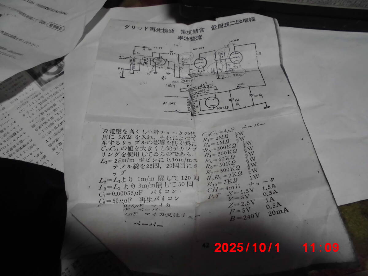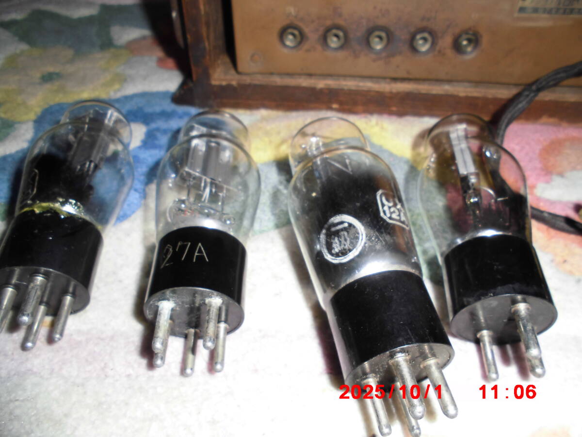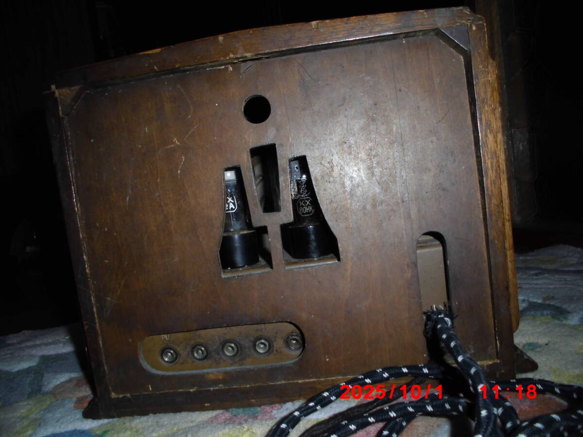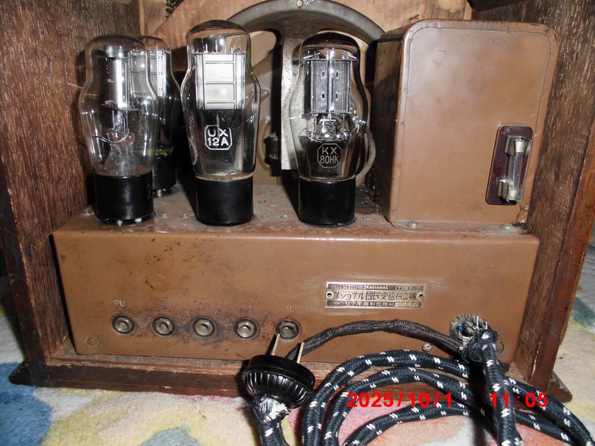 写真の通りナショナルの木製真空管4球KX-!2B UX-12A UY-27A UX-36Bいずれもヒーター点灯並四国民2號です