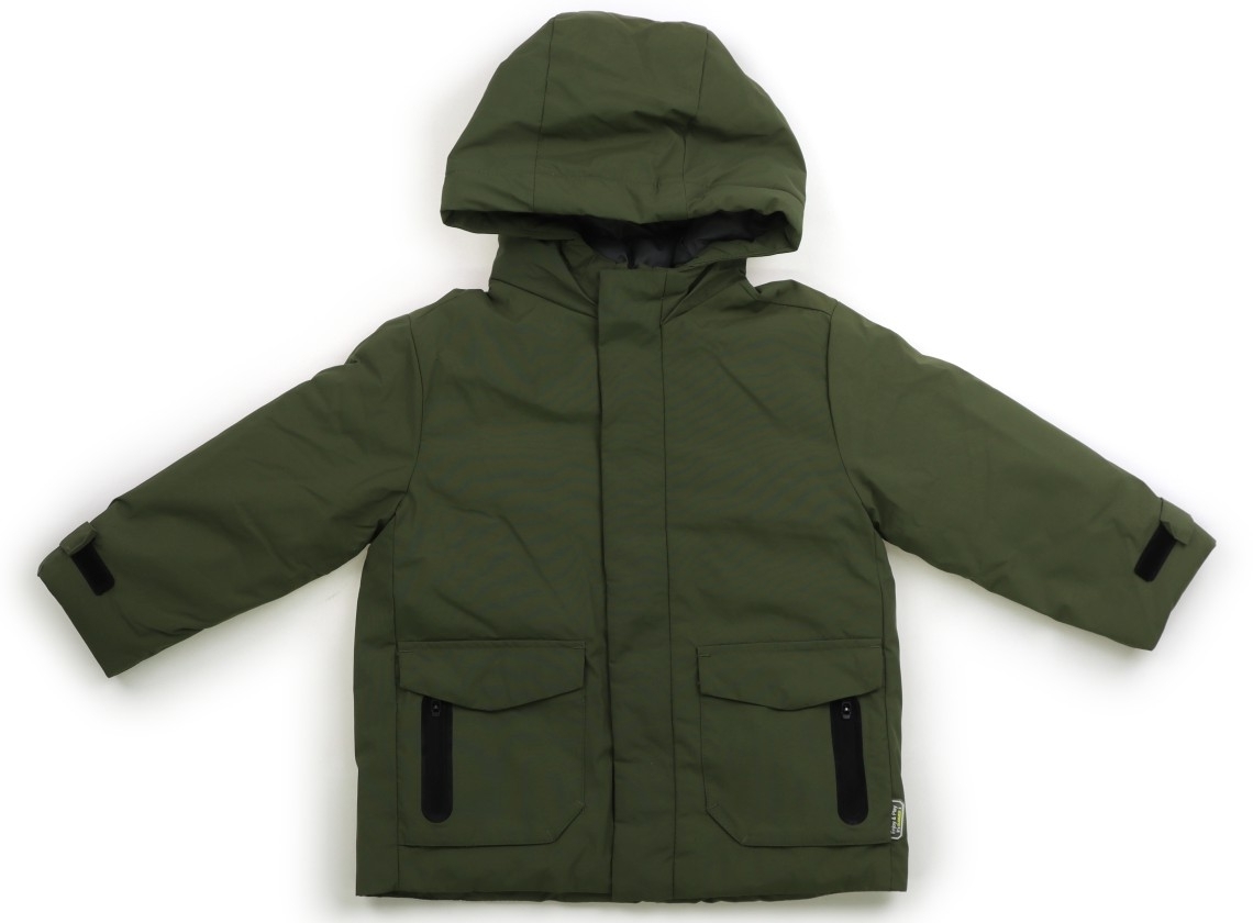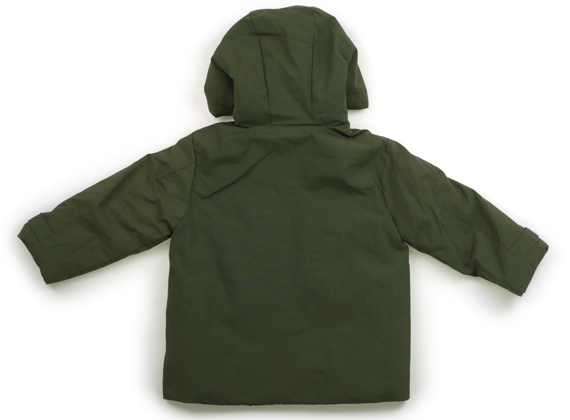 ナイロン素材。中綿入り。フードは縫い付けです。実際のサイズ表記は、92cm。ファスナー・スナップボタン開き。薄い汚れがいくつか見られます。