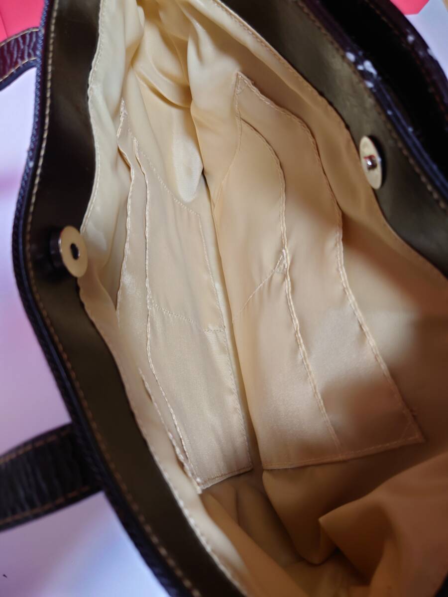 商品は使用品です。家族のものが所有しておりました。何でも買うだけ買っていつも殆ど使わずにいるので、こちらの品も殆ど使ってないように見えて、布の部分は綺麗に見えますが、合皮の部分は経年の末、所々剥がれてたり劣化が見受けられます。よってジャンク扱いといたします。