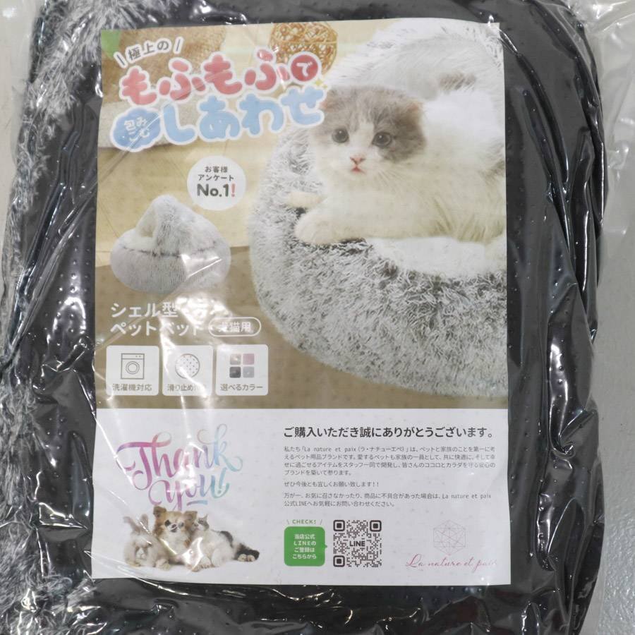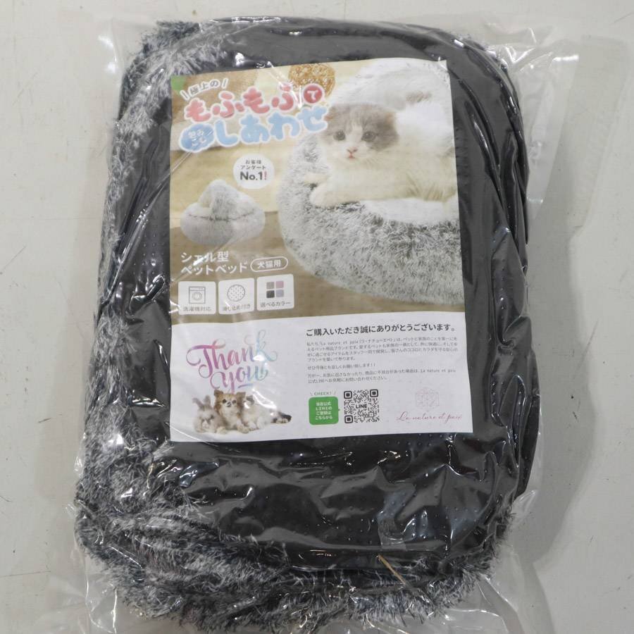 ラ・ナチューエペ シェル型ペットベッド 犬猫用 滑り止め付き 洗濯機対応 色:グラデーションブラック★272v10