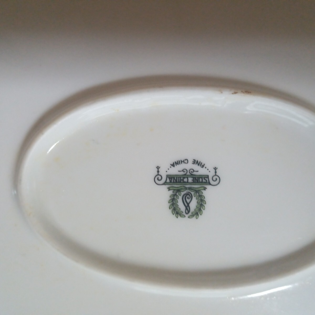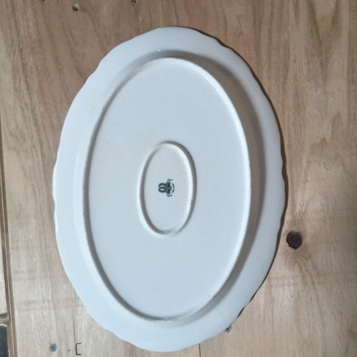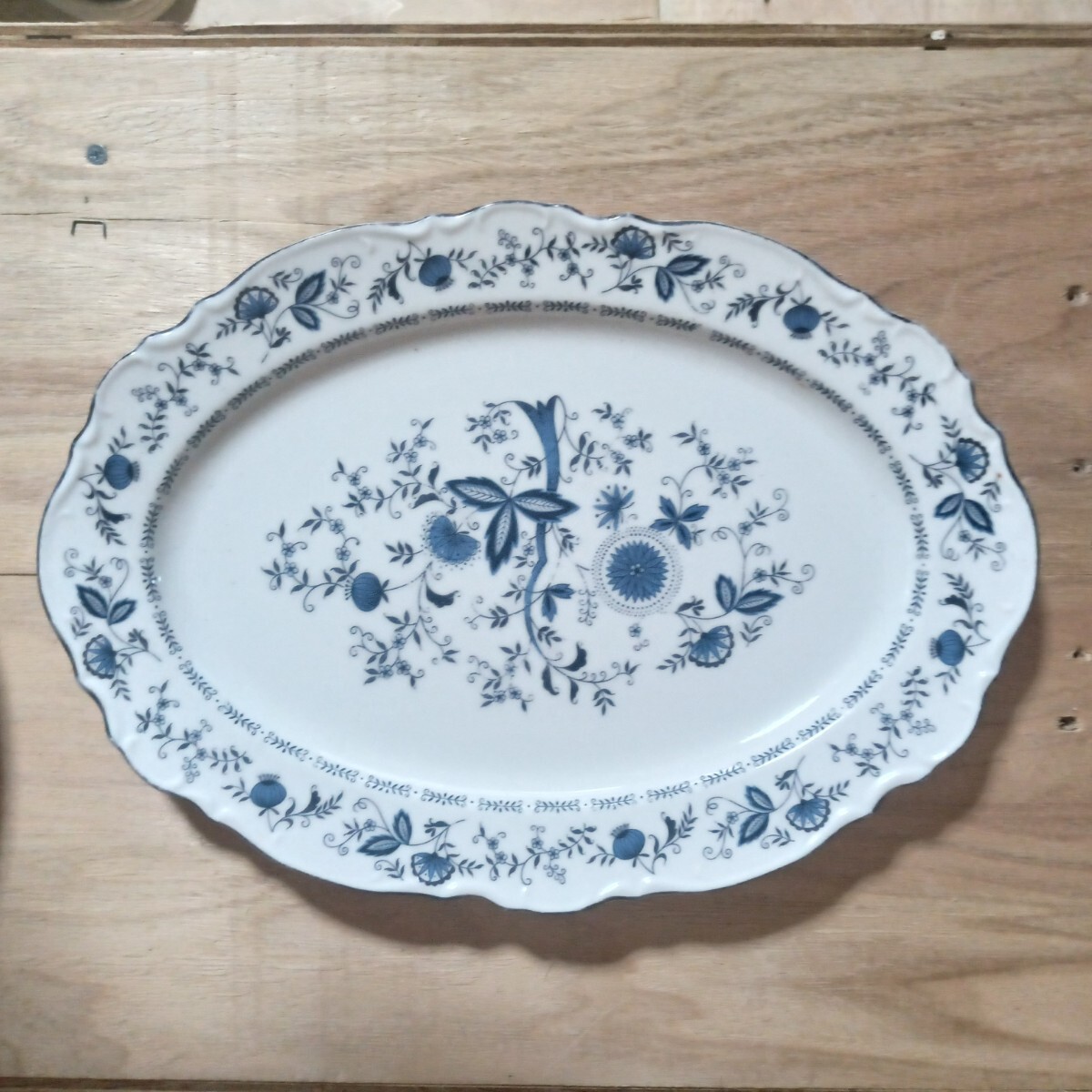青い花柄の楕円形大皿、Stone China製の高品質な食器です。2枚セットになります