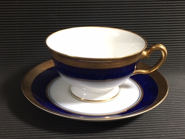 ◎未使用 大倉陶園 セーブルブルー雲模様 金蝕 カップ&ソーサー◎z17.39希少