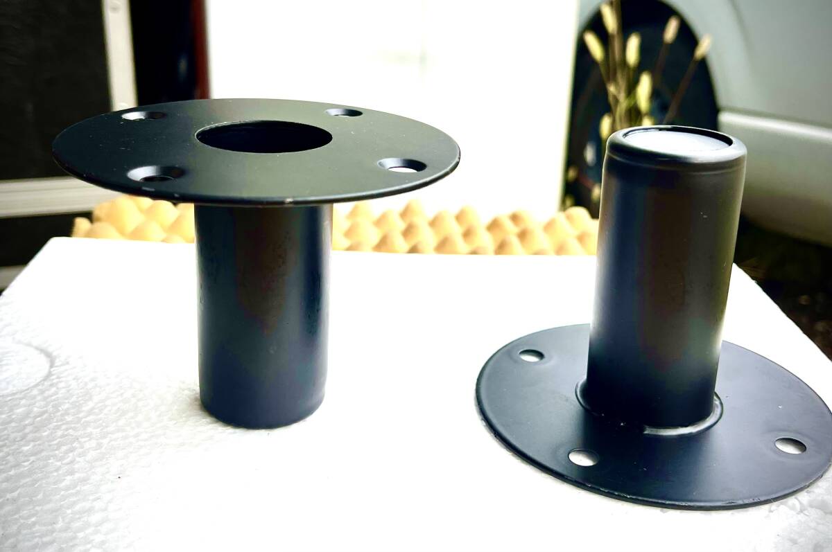 スピーカーをスタンドに取り付け為のスチール製のスピーカーフランジ二個の出品です。