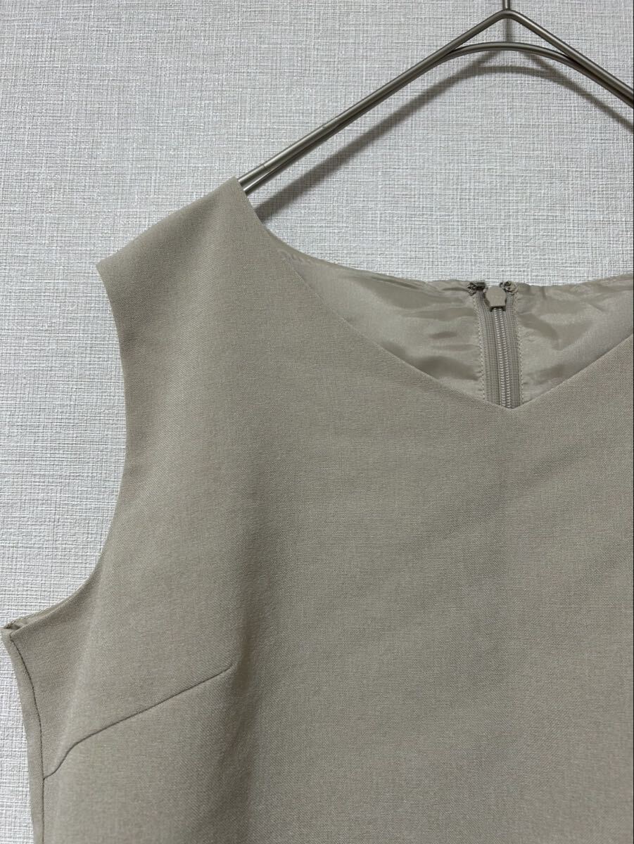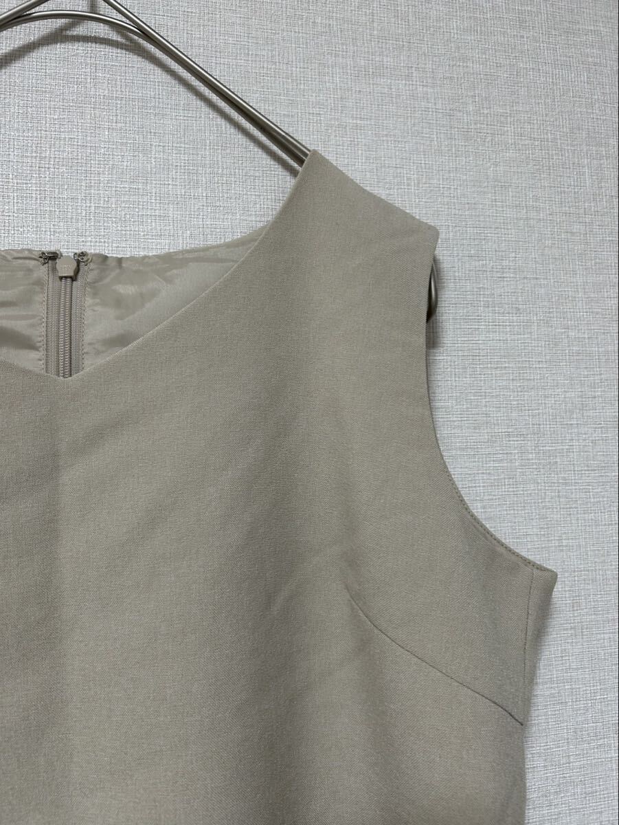 滑らかなベージュのノースリーブワンピース、サイズ38。