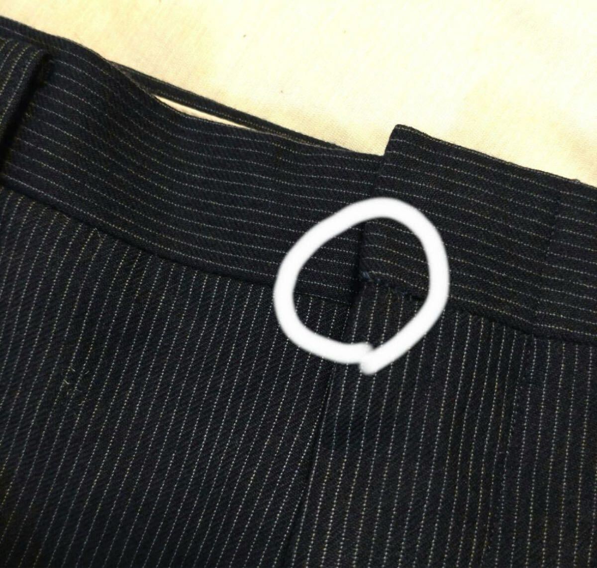 ズボンのファスナー上の部分を裏から縫っております。正面からは分からずきちんと繋がっておりますので気にならない方には良いお品です。