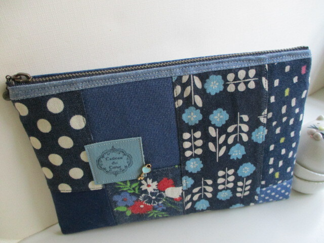 ハンドメイド * ちょっと大きめ 通帳ポーチ * 綿麻 デニム 等 いろいろ * パッチ :2 : ♪