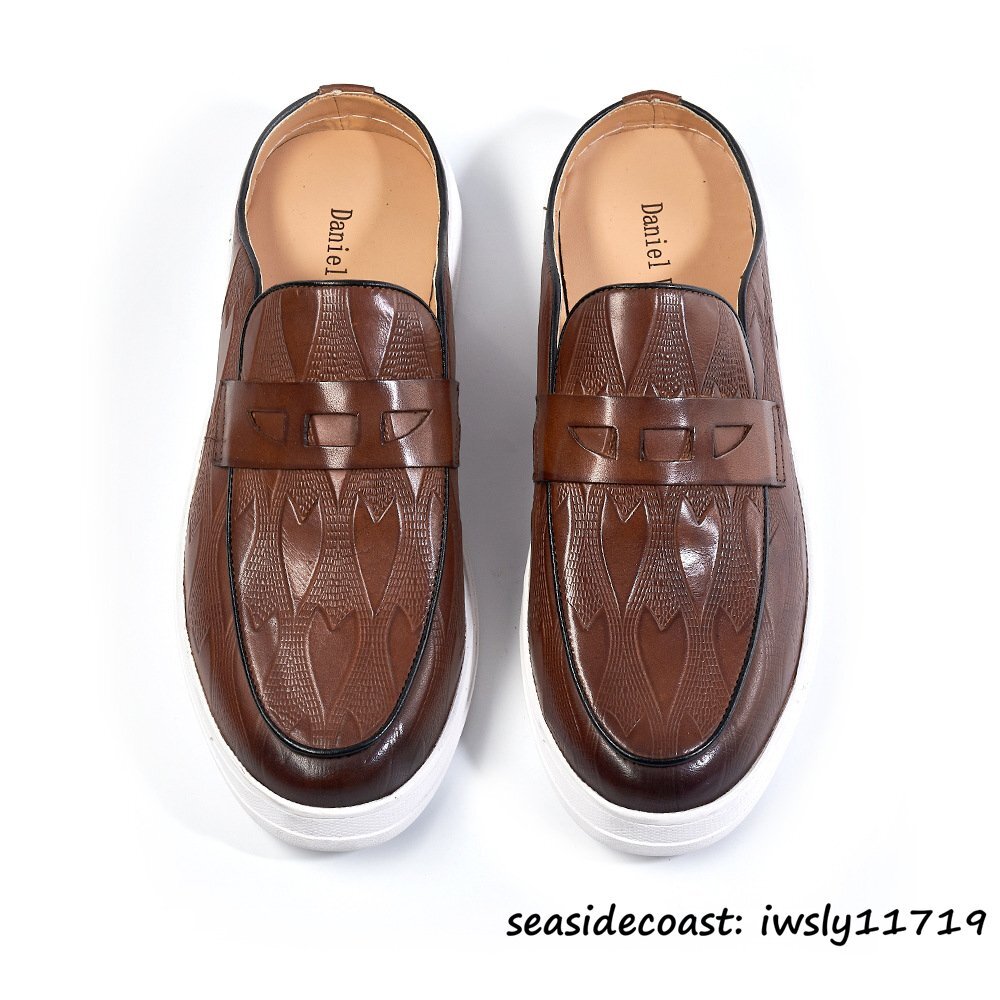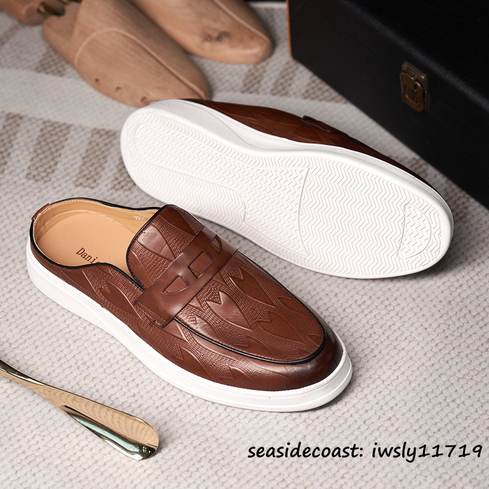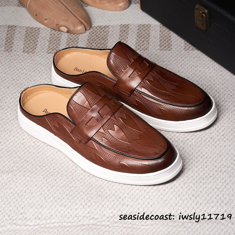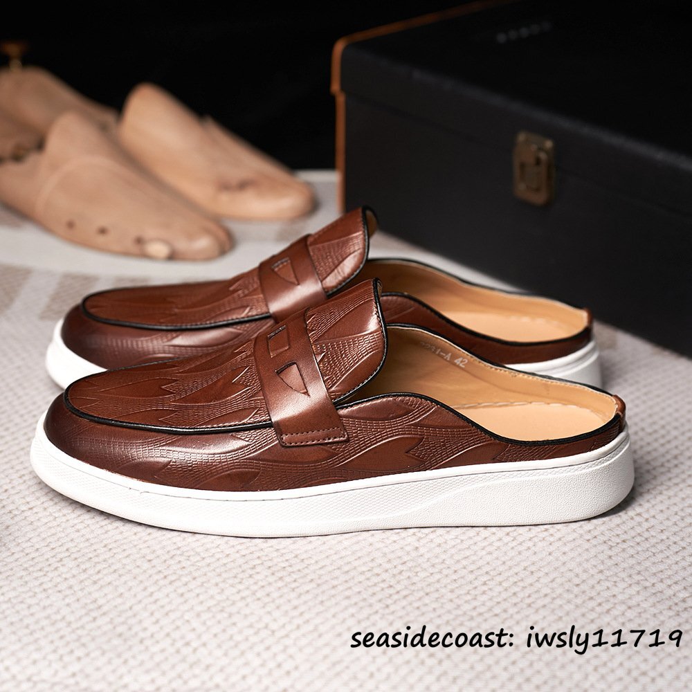 超高級◆ローファー 本革 メンズ サンダル ビジネスシューズ 職人手作り 牛革 レザーシューズ スリッパ スリッポン 紳士靴 ブラウン 25.0cm
