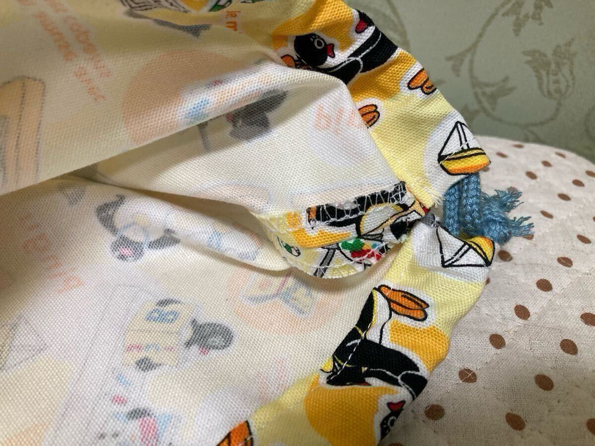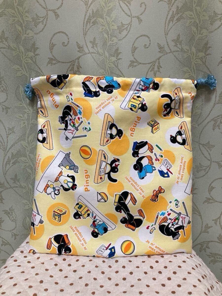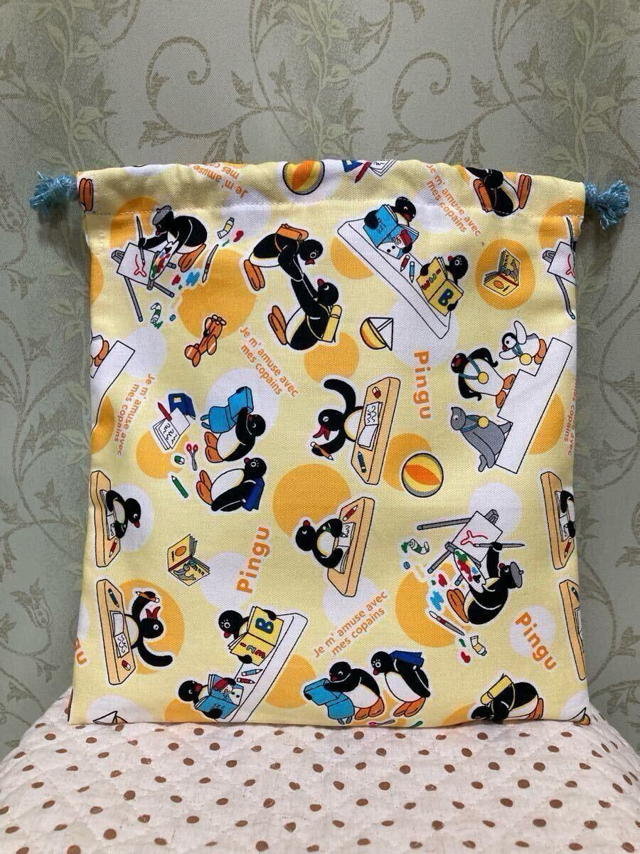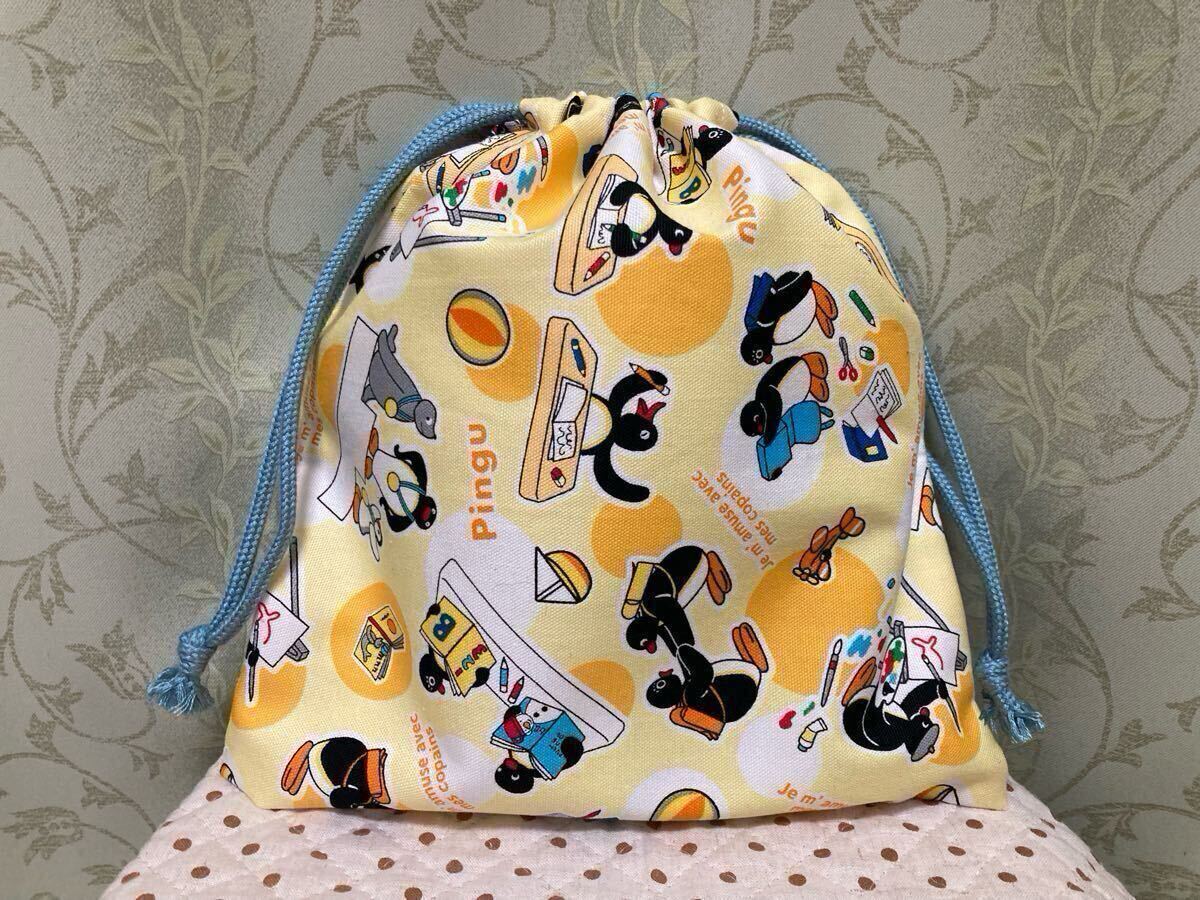 給食袋 巾着袋 巾着 小学校 ピングー ハンドメイド マチなし 裏地なし 一枚仕立て 入学