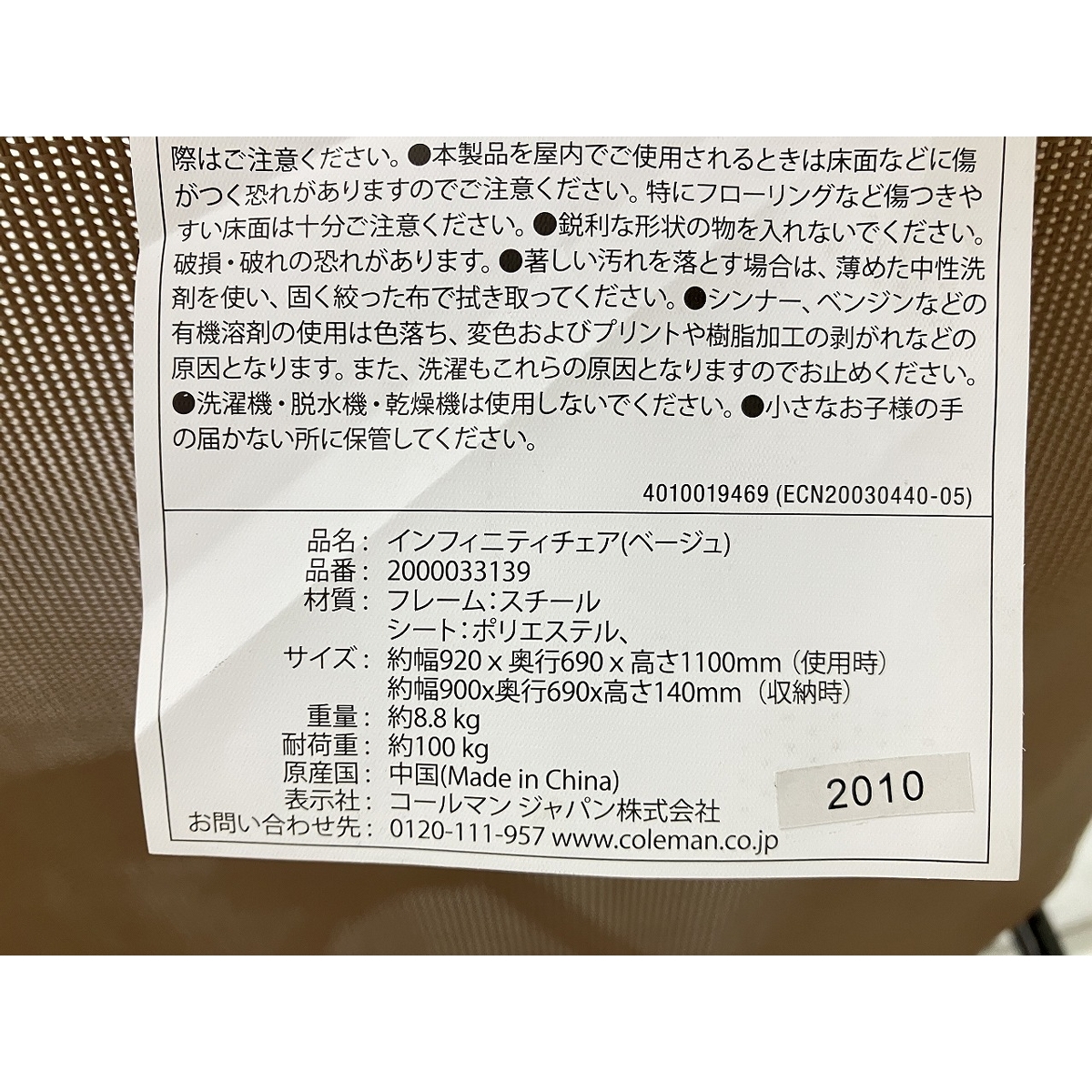 Coleman コールマン キャンプ インフィニティチェア ベージュ 2000033139 折りたたみ アウトドア 中古 W10450308 |
