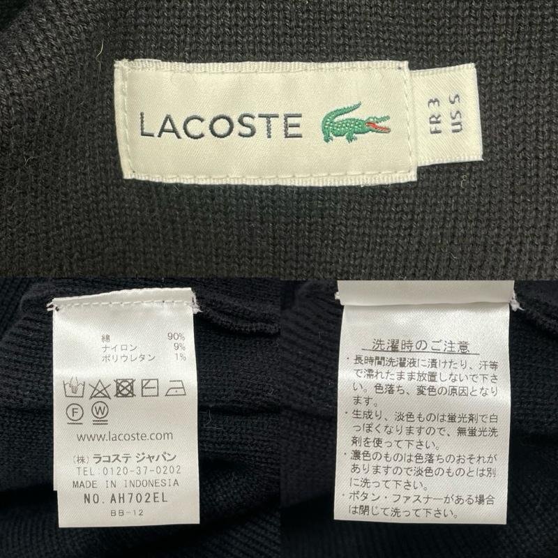 ラコステ ミラノ リブ ニット カーディガン ジャケット AH702L ワニロゴ ワッペン ノーカラー S
